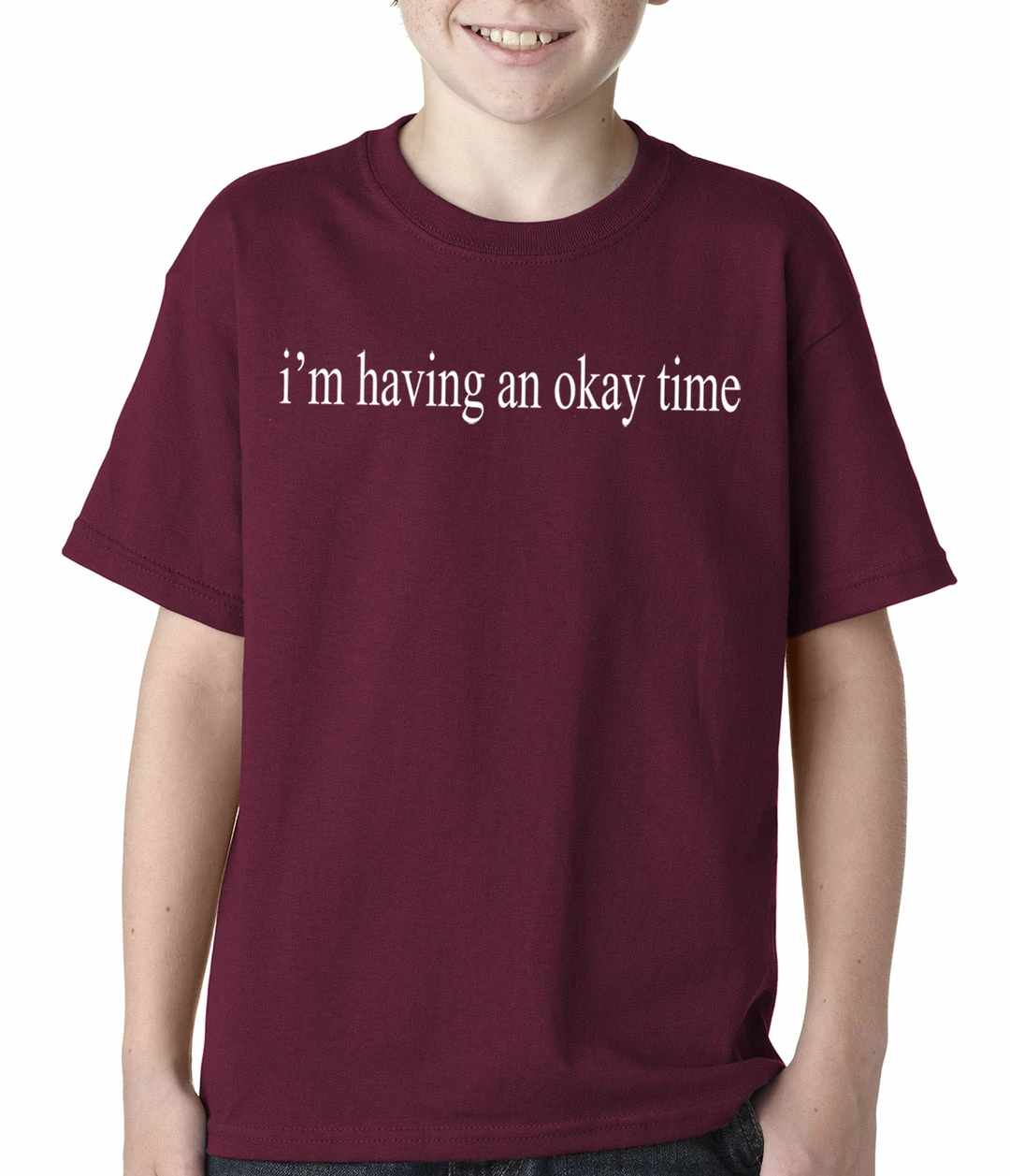 Get your hands on this amazing I’m Having An Okay Time Top. All of our I’m Having An Okay Time Tops have a classic, comfortable fit as well as being pre-shrunk, so you can expect little to no shrinkage.