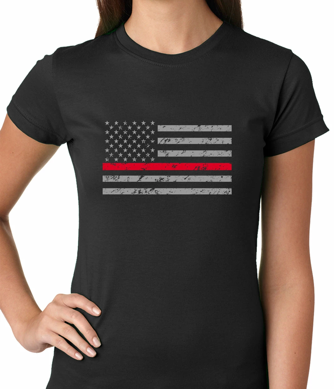 Bewild Firefighter Thin Red Line American Flag – Support Firefighter Department Horizontal Ladies T-shirt Cool Funny & Offensive