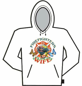 Firefighters Wife, You will be able to picture yourself walking anywhere in this White Hooded 50/50 Sweatshirt. Designed for warmth and durability the 7.5 ounce, 50/50 blend fleece fabric with double-ply hood provides protection from a blinding snow storm at the North Pole or from blowing sand in the Mojave Desert. This hooded sweat is versitility plus. The convenient pouch pocket keeps hands warm or holds a water bottle. The matching drawstring and metal grommets on the hood make sure it stays where it belongs. The set-in sleeves, ribbed cuffs and banded bottom all keep this shirt together in a way that makes durability its middle name.