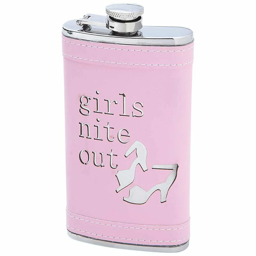Bewild Flasks 6oz Girls Nite Out Party Shoes Stainless Steel Flask With Pink Wrap
