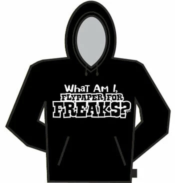 Fly Paper For Freaks, You will be able to picture yourself walking anywhere in this Black Hooded 50/50 Sweatshirt. Designed for warmth and durability the 7.5 ounce, 50/50 blend fleece fabric with double-ply hood provides protection from a blinding snow storm at the North Pole or from blowing sand in the Mojave Desert. This hooded sweat is versitility plus. The convenient pouch pocket keeps hands warm or holds a water bottle. The matching drawstring and metal grommets on the hood make sure it stays where it belongs. The set-in sleeves, ribbed cuffs and banded bottom all keep this shirt together in a way that makes durability its middle name.