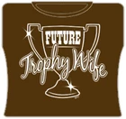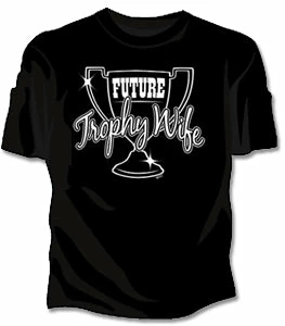 Future Trophy Wife Girls T-Shirt. Exclusively from Bewild.com, these new tee’s feature hard-core sayings that say it all. From “Lick Here For Full View” to “Skanky white-trailer trash”. How about a t-shirt that says “Dip me in Chocolate and throw me to the lesbians?” Our short sleeve “Future Trophy Wife” t-shirts are made from a 100% fully machine washable preshrunk cotton for a cool and comfortable fit every time.
