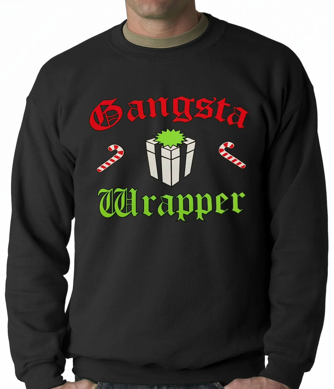 Bewild Gangsta Wrap Funny Christmas Adult Crewneck Holiday Prints