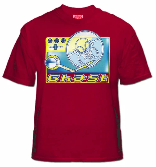 All Ghast t shirts are made of 100% super soft cotton and completely machine washable. Red Ghast t-shirt has a hightech turntable that has the ghast logo inside the record and it says Ghast along the bottom of the print.
