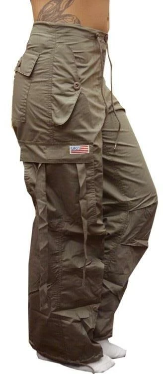 Girly Basic UFO Pants (Moss). They’re here! UFO Clothing has a new line of cool cargo pants called “Girly Cuts”. They have a cleaner cut around the waist and hips. Drawstring waist and leg openings to assure a perfect fit every time. Two Cargo Pockets w/ Straps and velcro closures, Two pockets on each side and one on the back! You’re going to love them! The world Famous UFO Pants are made of 65% polyester, 35% cotton and are fully machine washable.