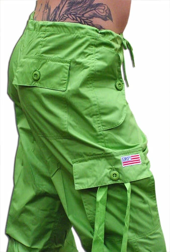 They’re here! UFO Clothing has a new line of cool cargo pants called “Girly Cuts”. They have a cleaner cut around the waist and hips. Drawstring waist and 4″ zipper in the front. Two Cargo Pockets w/ Straps, Two pockets on each side and one on the back! You’re going to love them! The world Famous UFO Pants are made of 65% polyester, 35% cotton and are fully machine washable.