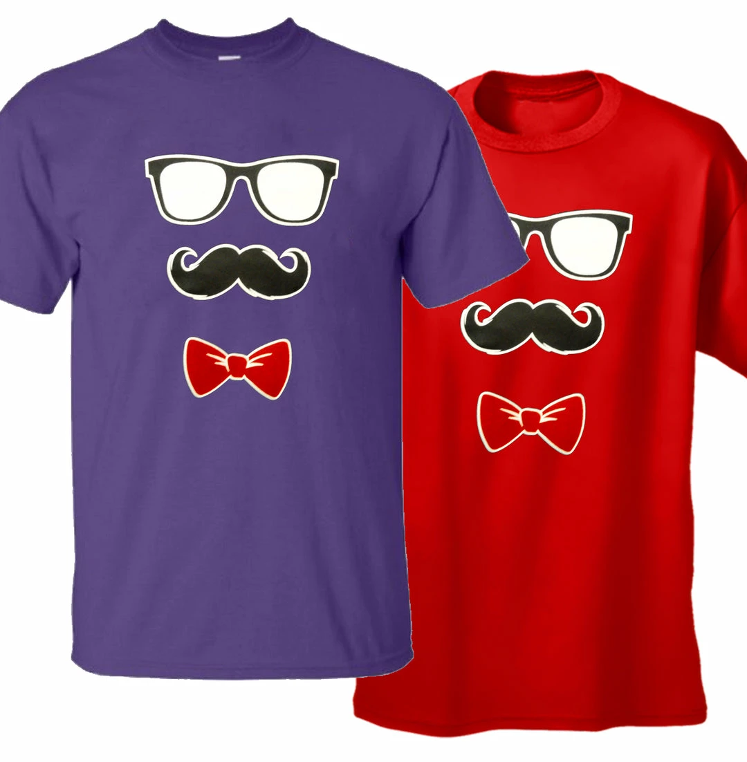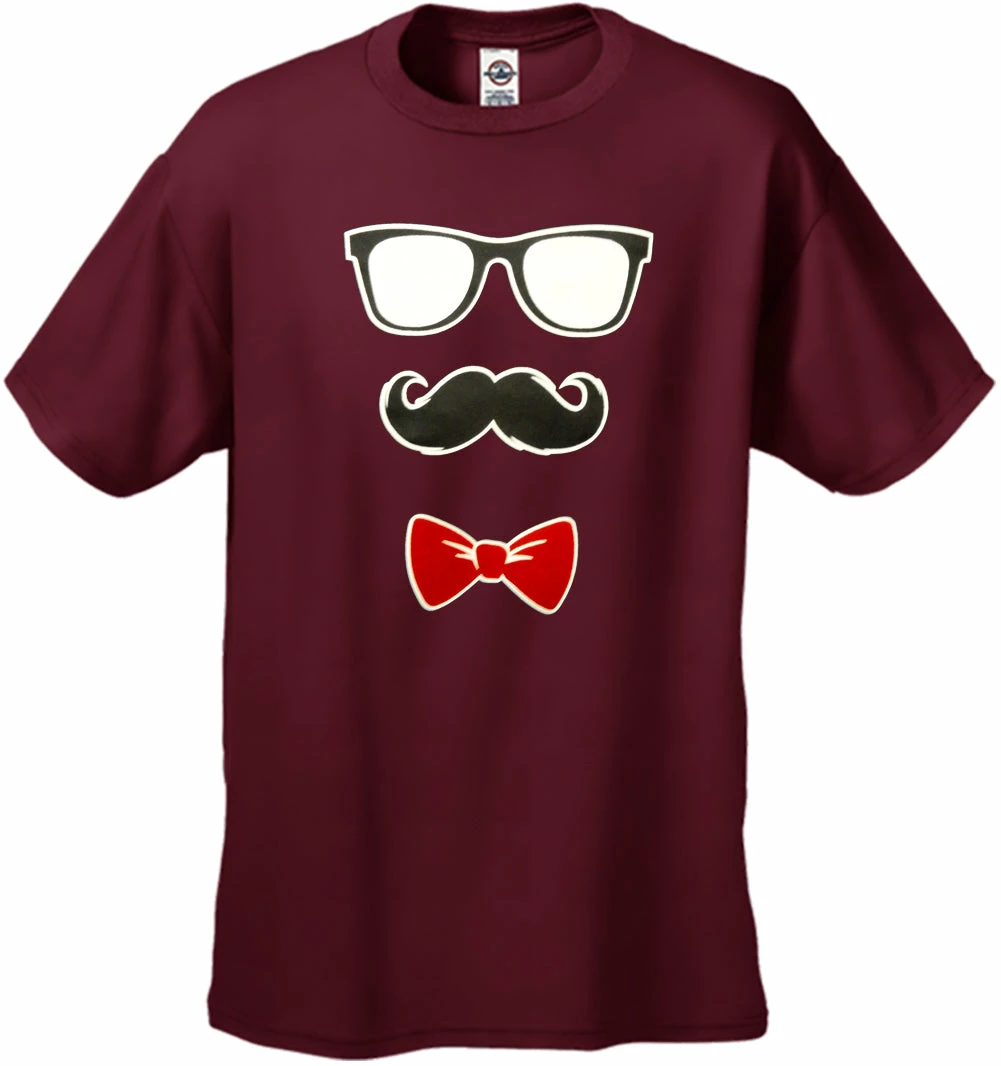 Glasses, Mustache, and Bow Tie Men’s T-Shirt features a classic 100% Cotton style is a great choice for anyone’s T-shirt drawer. These Sunglasses Moustache Bowtie Men’s T-Shirts have been printed with image on the front. These t shirts are made from heavyweight 6oz. 100% Preshrunk cotton. Looks Great, Priced right – and gets better with each washing.