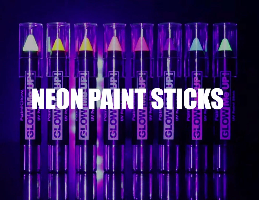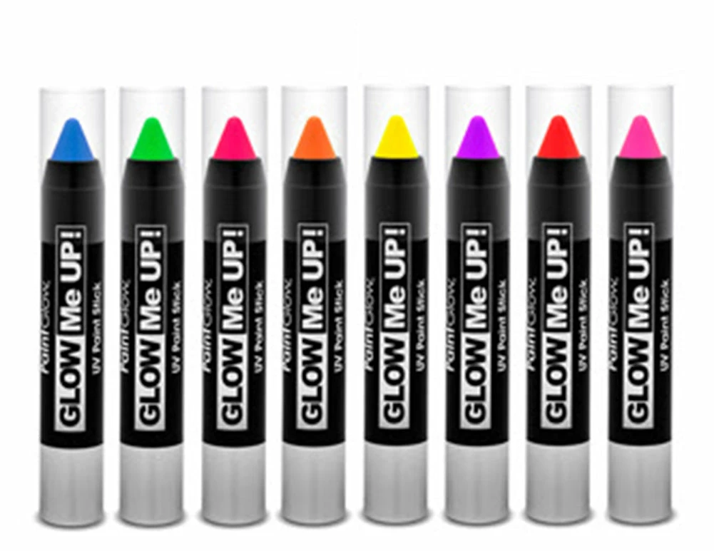Glow Me Up Neon paint Sticks are perfect for creating your individual designs. Quick and easy application makes this product essential for face painting and body art enthusiasts. This highly pigmented product is fantastic for achieving detailed body art.