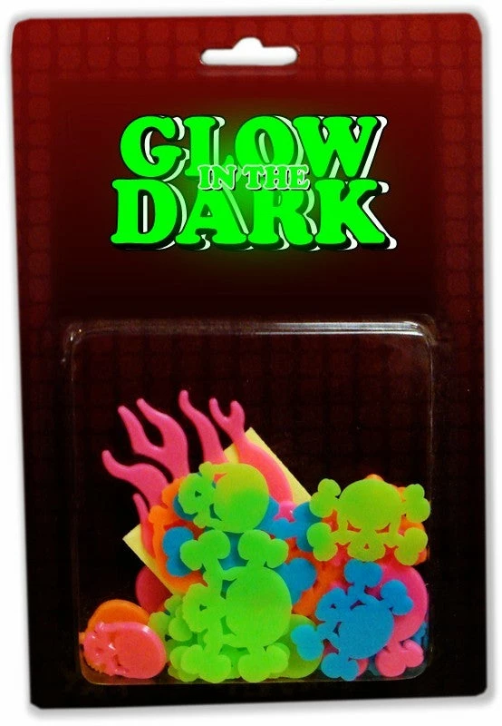 Add explosive Neon Glow in the Dark Color to your room! These stick on wall decoration easily stick to any surface with out causing damage, stay put and can be moved at any time! Stick um’ everywhere: Walls, Ceilings, Doors, Windows, Dressers, Lockers and even school books… The possibilities are endless. Each decoration is molded plastic in extreme neon colors that comes to life when exposed to UV black light or glows in the dark when the lights go out. Each pack comes complete with over 24 pieces in assorted sizes and colors.