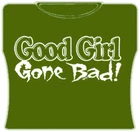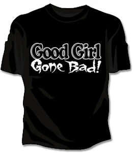 Good Girl Gone Bad Girls T-Shirt. Exclusively from Bewild.com, these new tee’s feature hard-core sayings that say it all. From “Lick Here For Full View” to “Skanky white-trailer trash”. How about a t-shirt that says “Dip me in Chocolate and throw me to the lesbians?” Our short sleeve “Good Girl Gone Bad” t-shirts are made from a 100% fully machine washable preshrunk cotton for a cool and comfortable fit every time.
