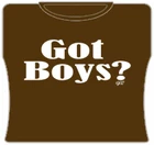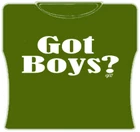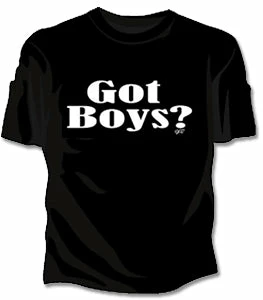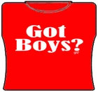 Got Boys Girls T-Shirt. Exclusively from Bewild.com, these new tee’s feature hard-core sayings that say it all. From “Lick Here For Full View” to “Skanky white-trailer trash”. How about a t-shirt that says “Dip me in Chocolate and throw me to the lesbians?” Our short sleeve “Got Boys” t-shirts are made from a 100% fully machine washable preshrunk cotton for a cool and comfortable fit every time.