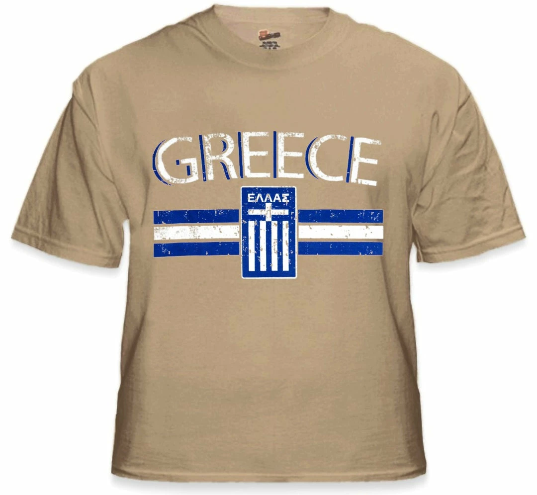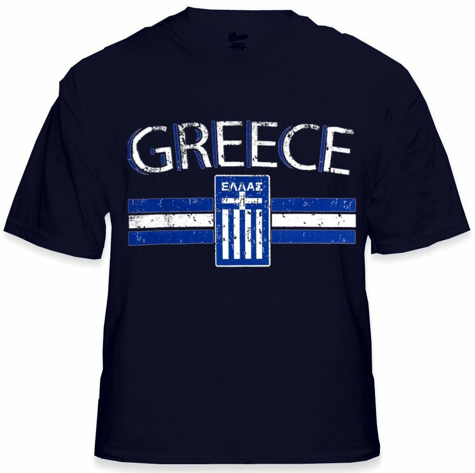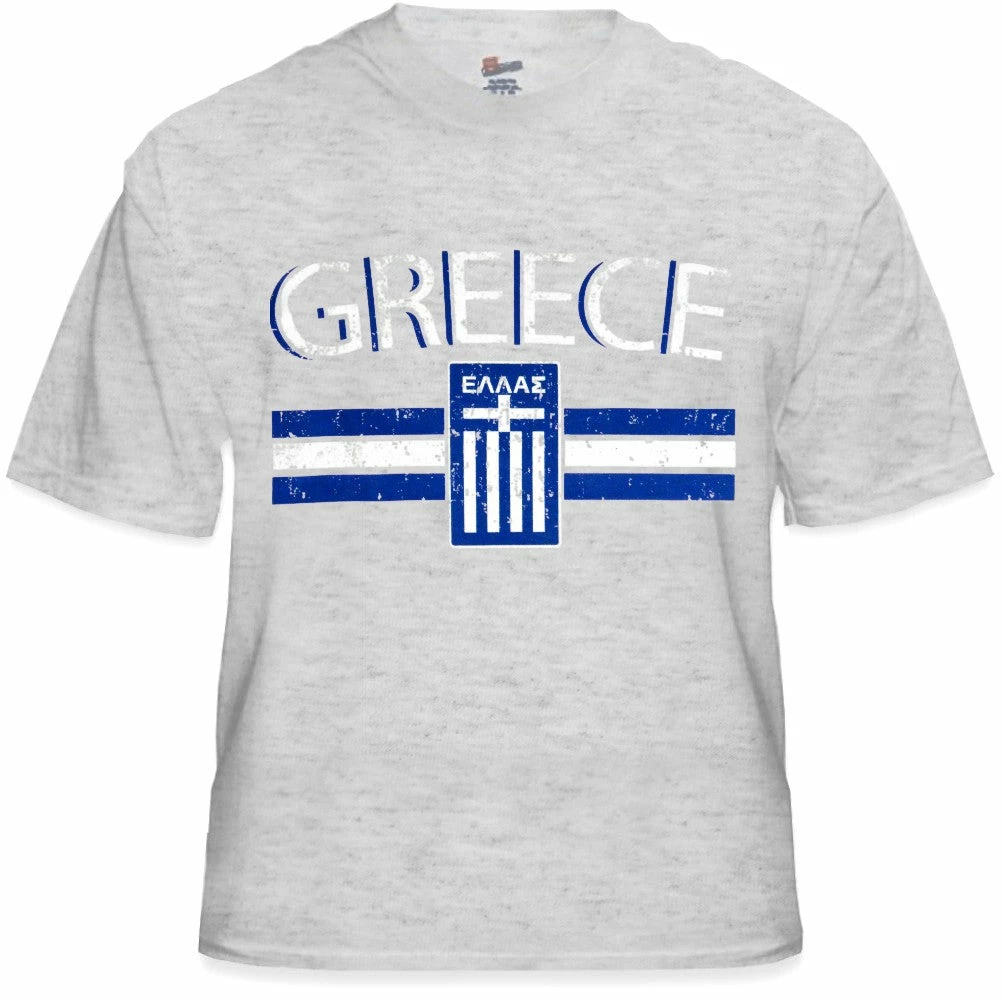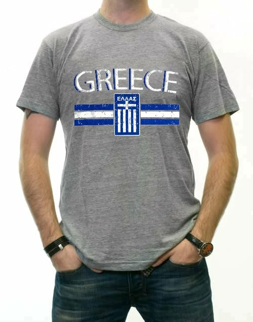 Greece Vintage Shield International Mens T-Shirt. Show pride for your favorite Nation! Our collection of deluxe vintage international print t-shirts are the perfect way to support your home country. Each shirt features premium vintage style designs made to look distressed for that soft “Favorite Old T-shirt” look from day one. These shirts are perfect whether you are rooting for your favorite soccer nation or just showing your love for a special country. Bold athletic style writing spells out each country’s name curved above the country’s national shield; a classic design that is sure to display your patriotism! Each shirt is printed to order on a deluxe Cotton tee shirt in your choice of color.