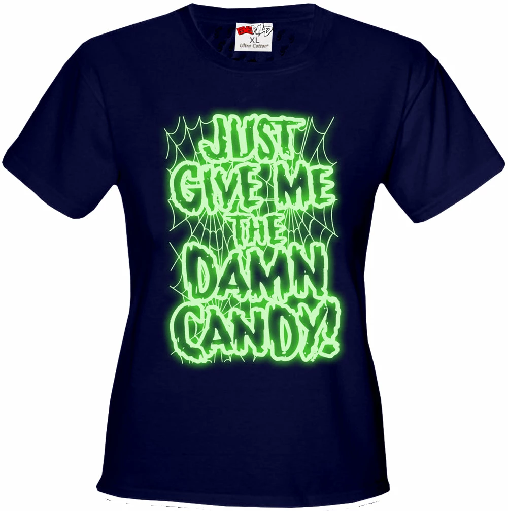 Bewild Halloween Costume T-shirts – Just Give Me The Damn Candy Glow In The Dark Girls T-shirt Halloween Prints
