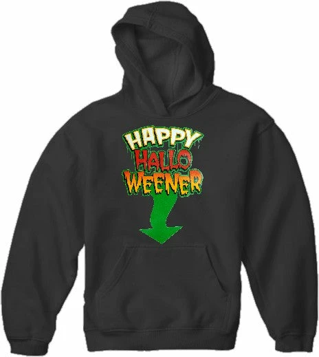 Happy Halo-Weener Halloween Hoodie. Horny? If you are in the halloween spirit and are looking for a little more this up coming halloween this shirt is for you! Designed to look spooky for the halloween season you will look the part… Just add a mask and you have a hilarious costume!