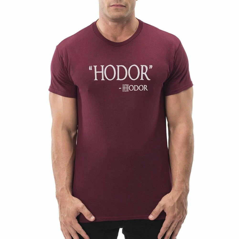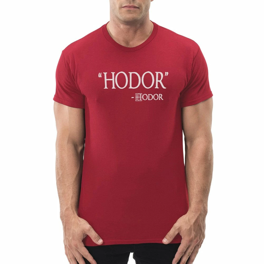 Hodor Hodor Quote Men’s T-Shirt features a classic 100% Cotton style is a great choice for anyone’s T-shirt drawer. These Hodor Hodor Quote Men’s T-Shirts have been printed with image on the front. These t shirts are made from heavyweight 6oz. 100% Preshrunk cotton. Looks Great, Priced right – and gets better with each washing.