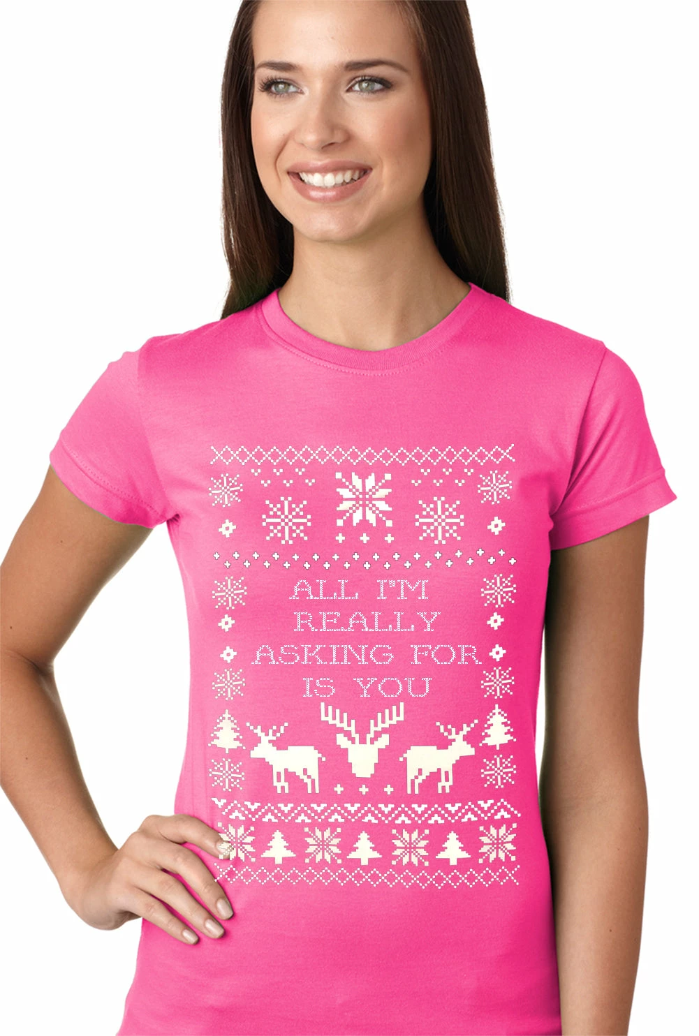 Get your hands on this amazing All I’m Really Asking For Is You Ugly Christmas Sweater Top. All of our All I’m Really Asking For Is You Ugly Christmas Sweater Tops have a classic, comfortable fit as well as being pre-shrunk, so you can expect little to no shrinkage.