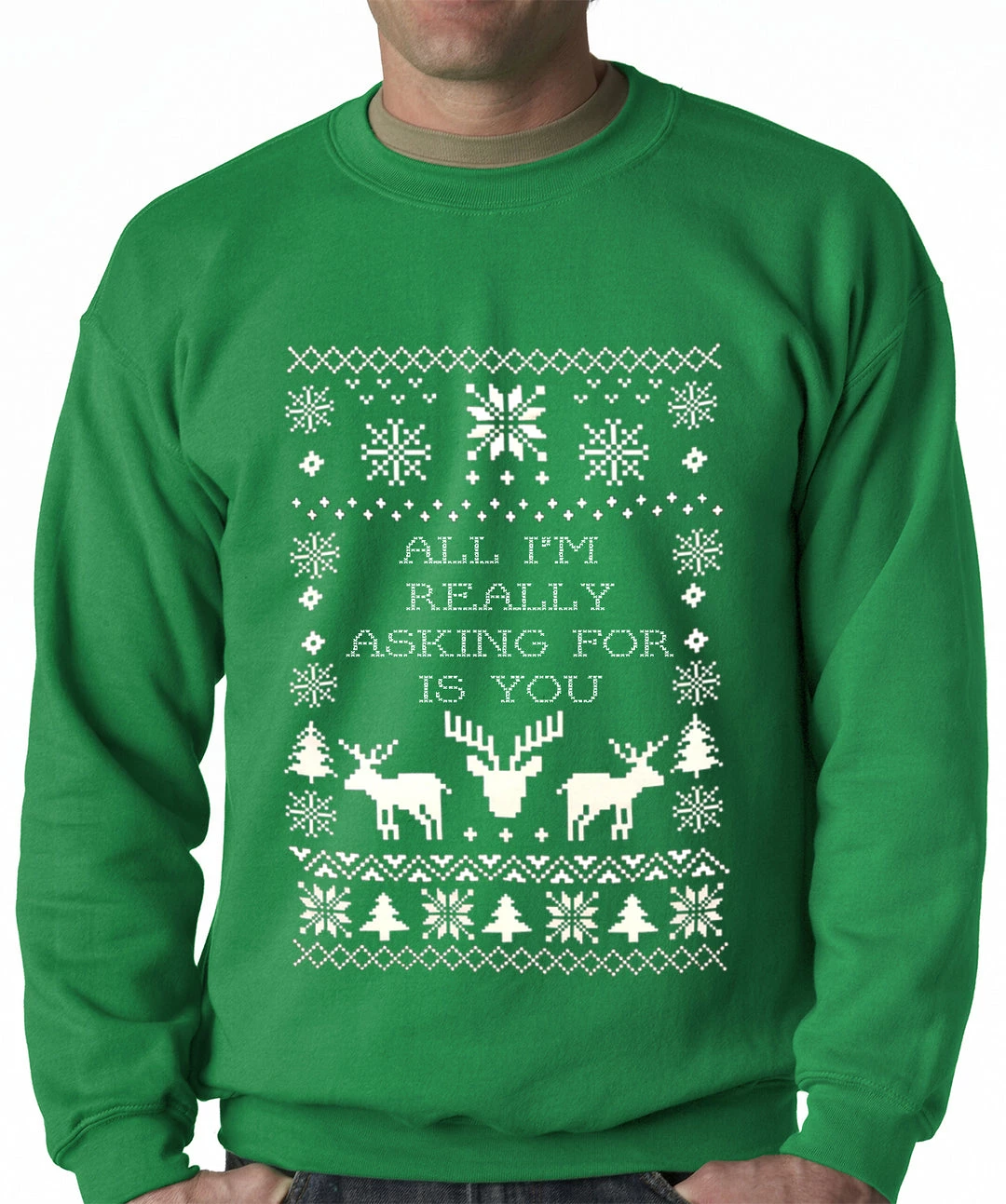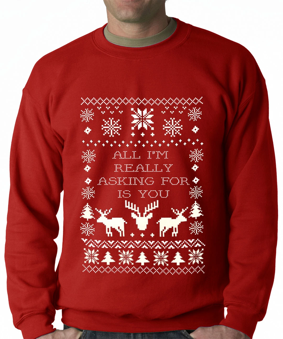 Get your hands on this amazing All I’m Really Asking For Is You Ugly Christmas Sweater Top. All of our All I’m Really Asking For Is You Ugly Christmas Sweater Tops have a classic, comfortable fit as well as being pre-shrunk, so you can expect little to no shrinkage.