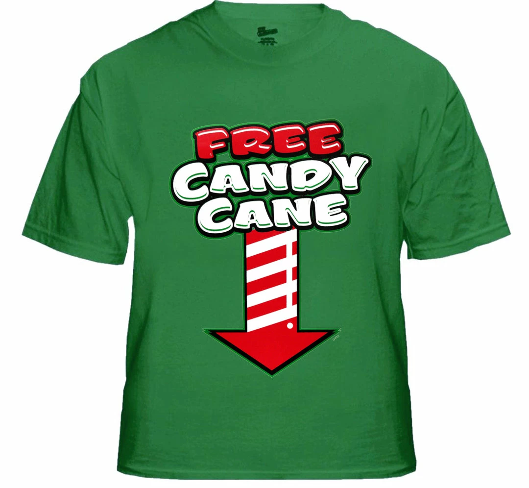 Christmas Tee’s – Free Candy Cane Men’s T-Shirt. The largest selection of funny and offensive novelty t-shirts are here! Our novelty t-shirts are funny and to the point and designed to look great and get the point across. Wear our selection of humorous joke shirts to a house party, school, the club or even just around the house. Each design has been hand selected by our team of humorist so you are sure to get all the laughs at your next event! Each design is printed on a comfy deluxe 100% cotton t-shirt in your choice of color.