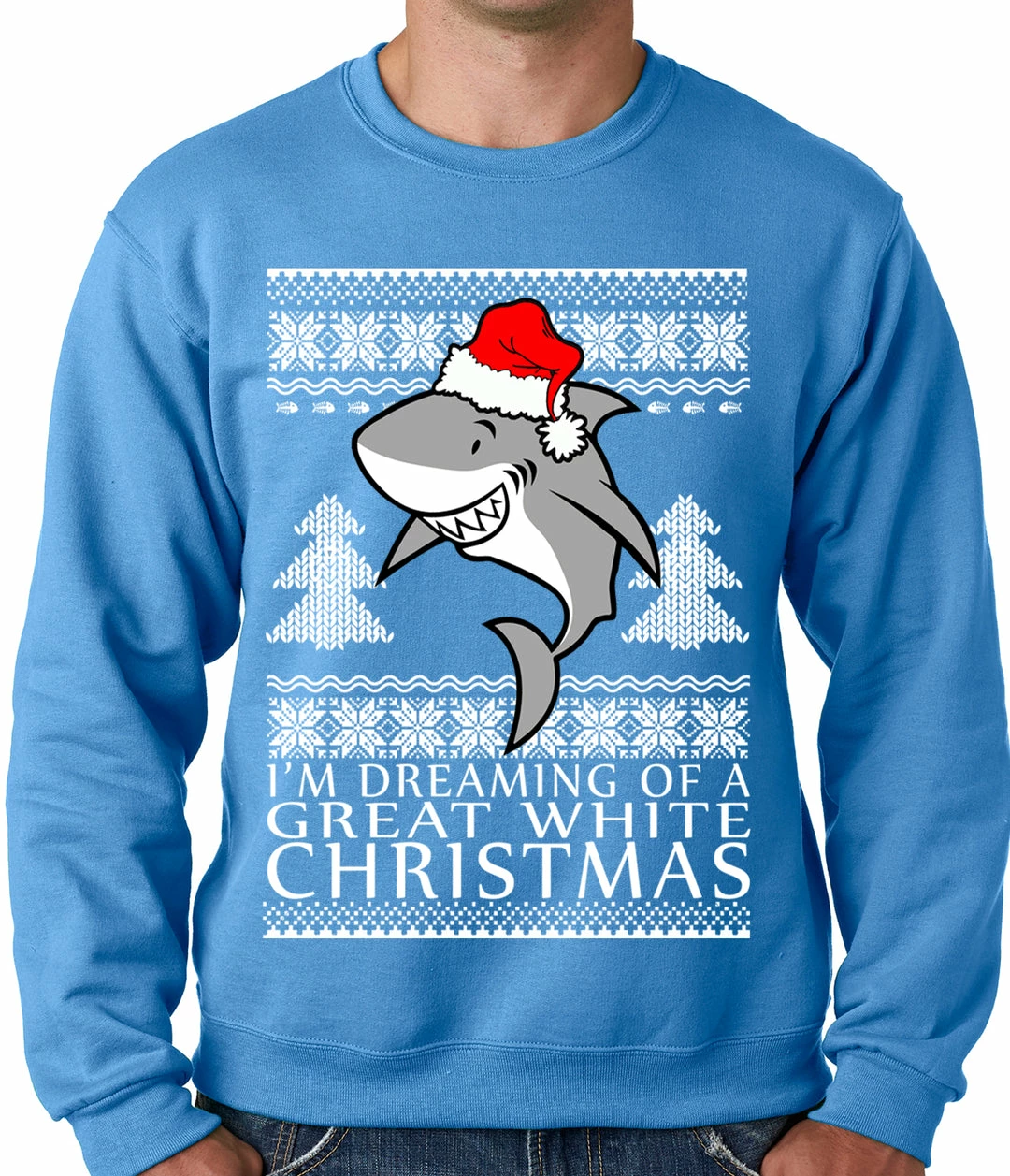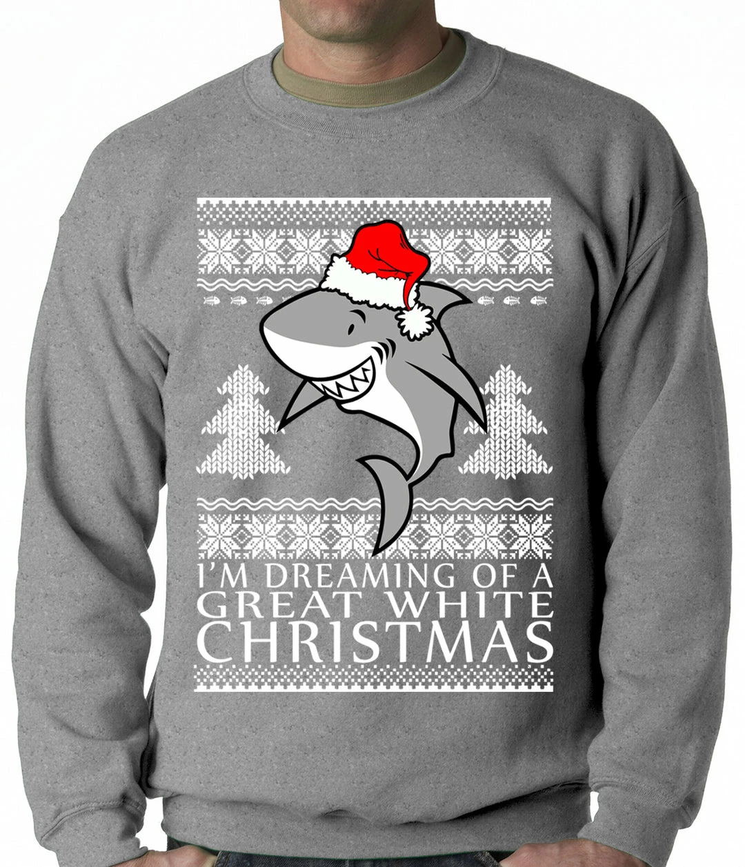 Get your hands on this amazing Great White Shark Christmas sweatshirt. All of our Great White Shark Christmas crewneck sweatshirts have a classic, comfortable fit as well as being pre-shrunk, so you can expect little to no shrinkage.