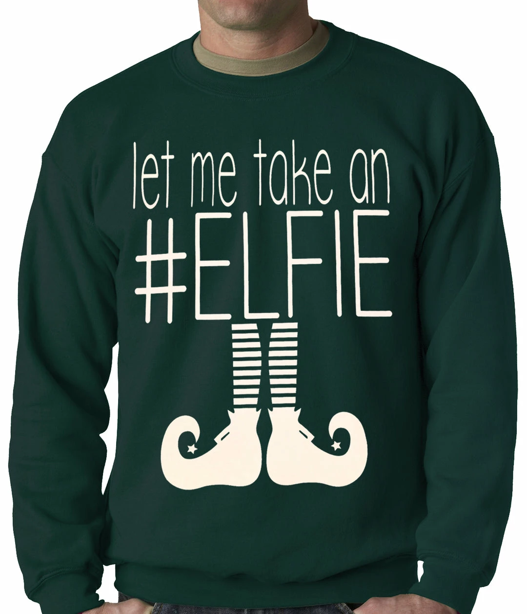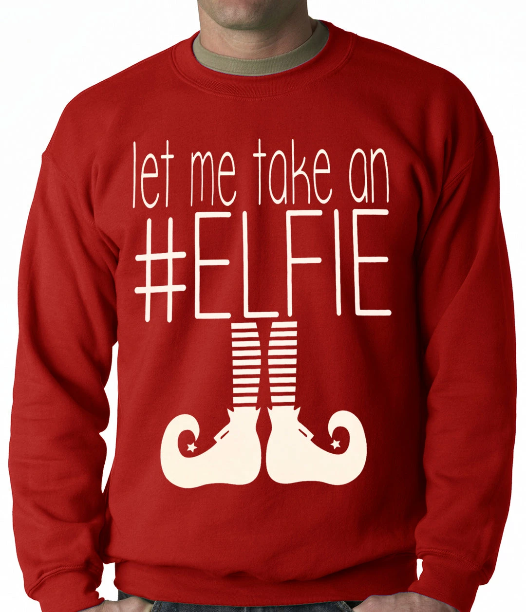 Bewild Holiday Prints Ugly Christmas Sweater – Let Me Take An #ELFIE Ugly Christmas Adult Crewneck