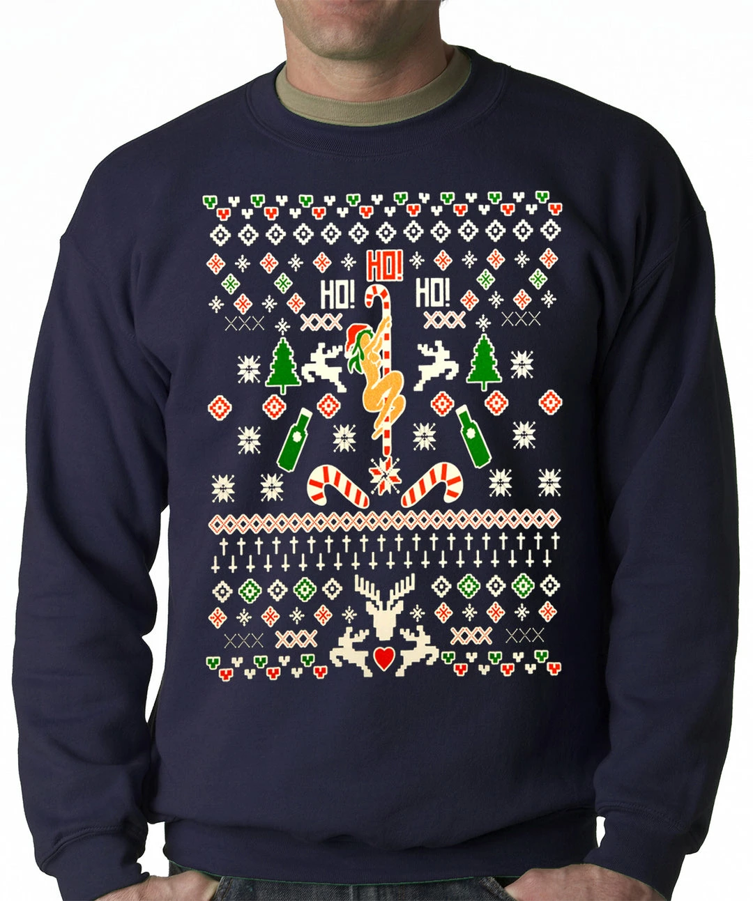 WARNING! This sweater is not for the faint of heart! It’s takes a very secure man to be able to proudly rock this tasteful, yet raunchy Christmas sweater. If this is the holiday sweater that you have been looking for. Be ready for the people at your next Christmas party to give a double take when they lay their eyes on what will most likely become the pride of your Christmas sweater collection. With multiple colors and sizes available, you’ll be able to find the perfect fit for your next Holiday party!