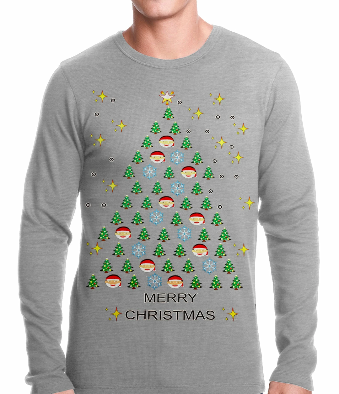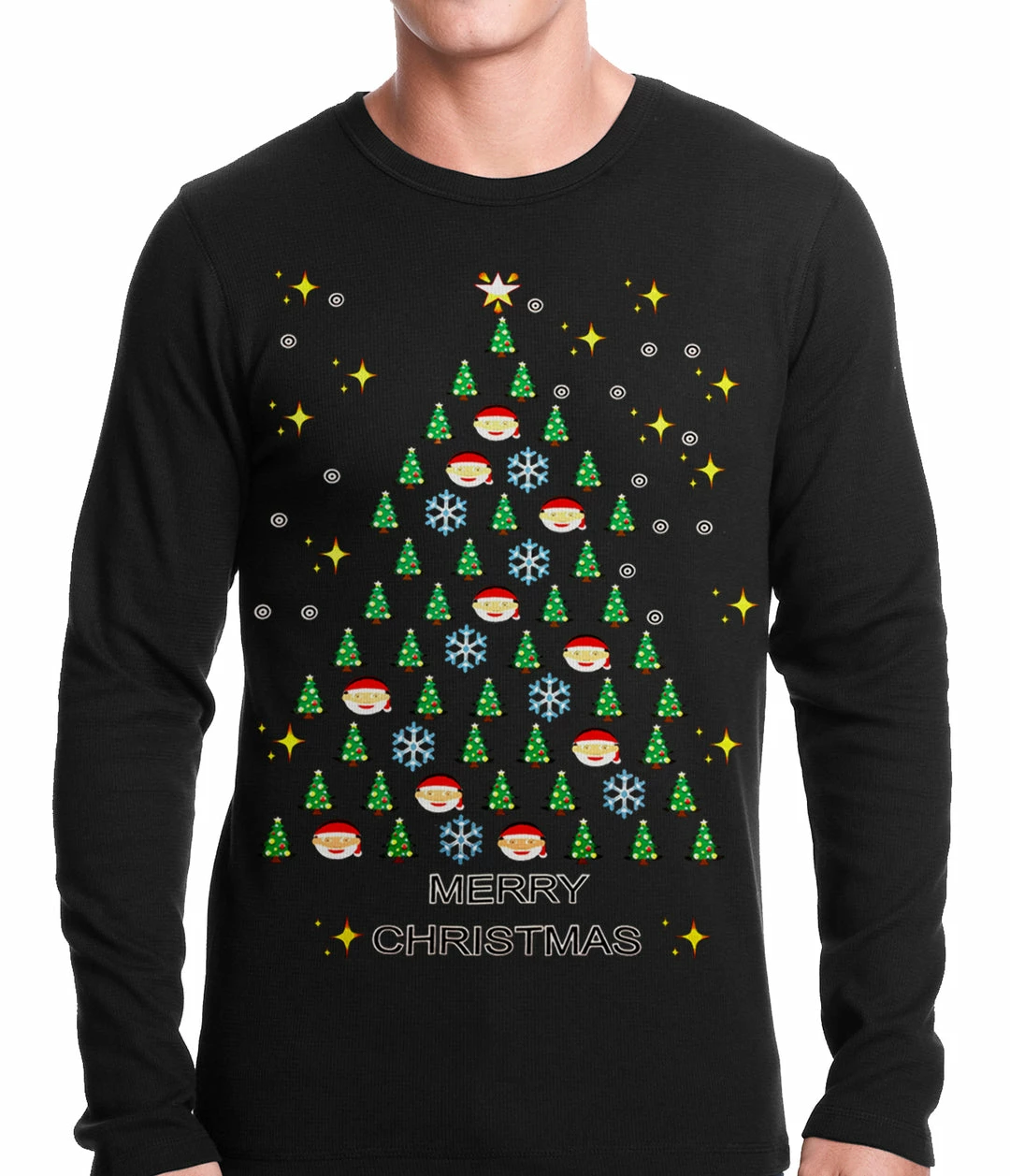 Bewild Holiday Prints Ugly Christmas Thermal – Emoji Christmas Tree Ugly Christmas Thermal Shirt