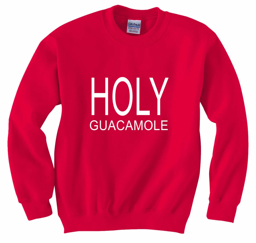 Holy Guacamole Crew Neck Sweatshirt. Our deluxe crew neck sweatshirts are perfect for keeping warm in the cold weather. Each sweatshirt is stylish and super comfortable! Crew neck sweatshirts are great for wearing under a jacket or zip up hoodie to keep warm when it’s cold and since the garment is made of breathable cotton-poly fabric these sweatshirts keep you from over heating when things get hot! Each crew neck sweatshirt is perfect for men and women. These sweatshirts are great for work, athletic training and daily wear.