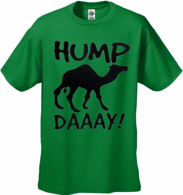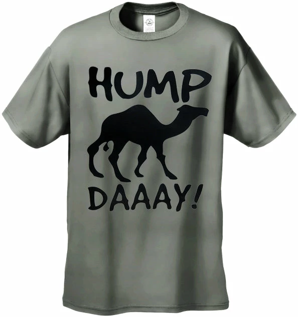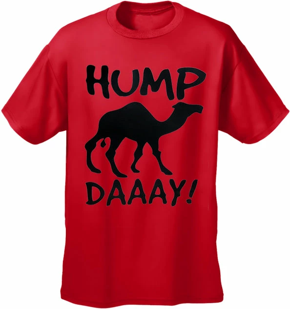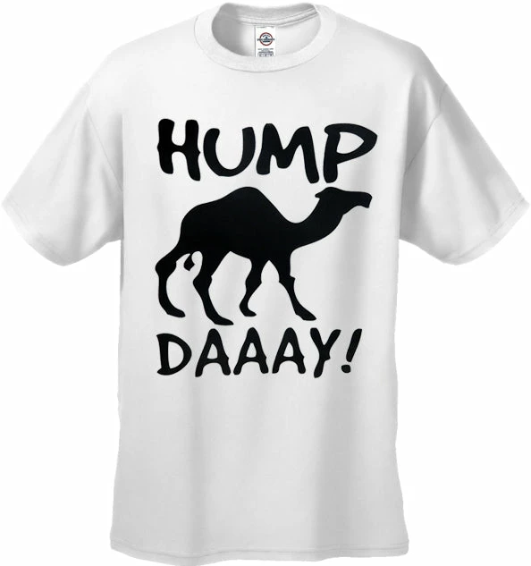 Uh No guess what day it is? Its Hump daaay! Hump Day Camel T-Shirts are available at bewild. All Camels love hump day, and so do most American workers. Chances are you’ve seen the Geico insurance commercial starring a camel … Well now get over the hump with your hump day t-shirt. Preshrunk 100% cotton jersey 6-oz. Seamless double-needle 7/8″ collar Taped neck and shoulders Double-needle sleeve and bottom hems Quarter-turned to eliminate center crease