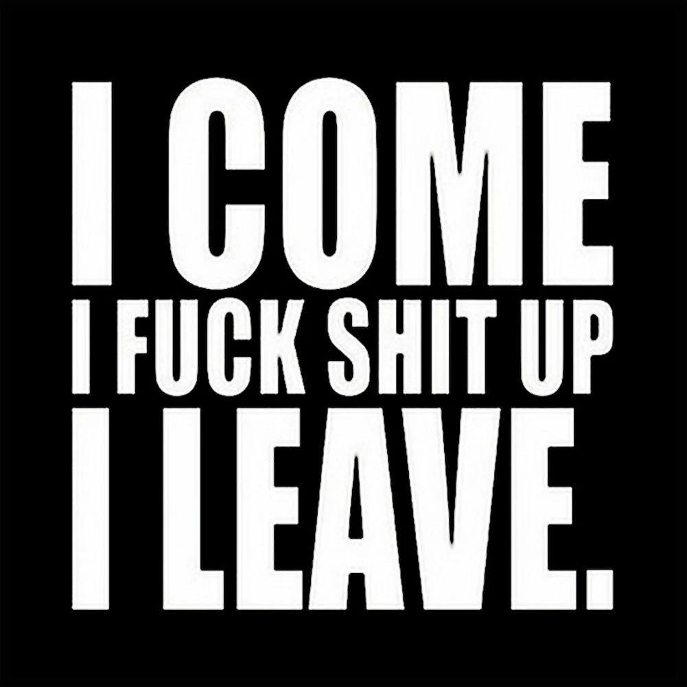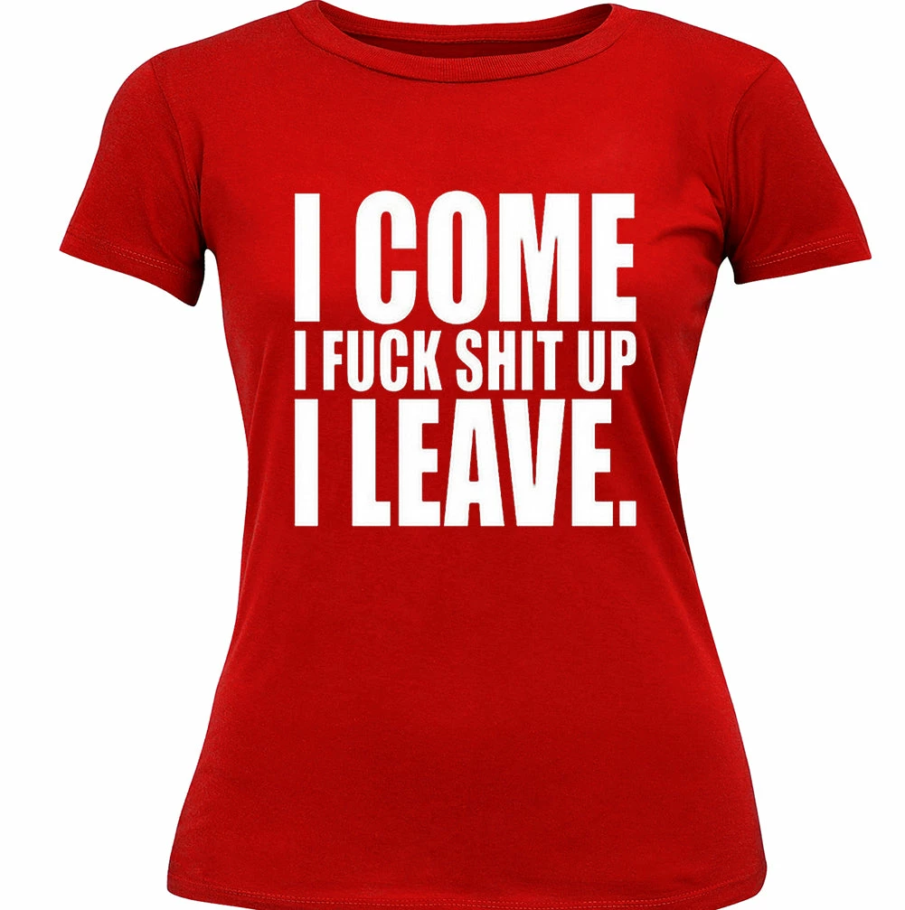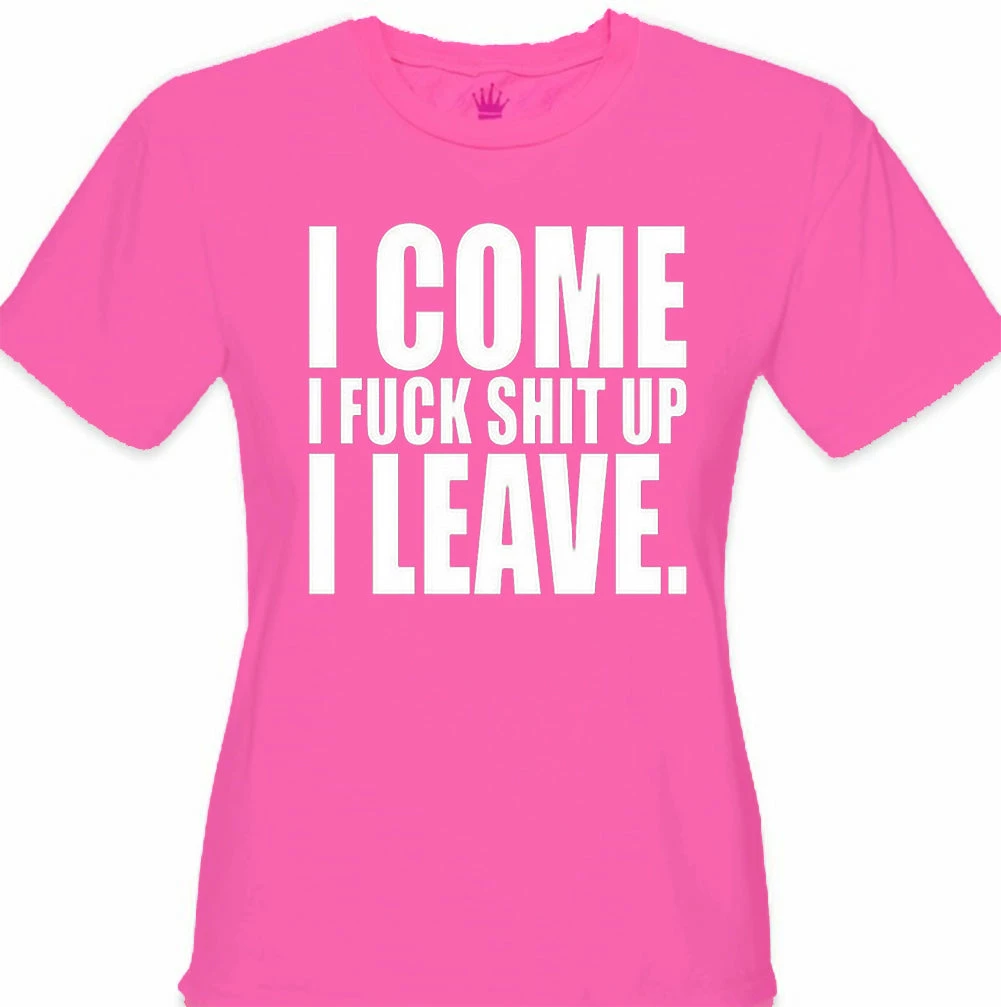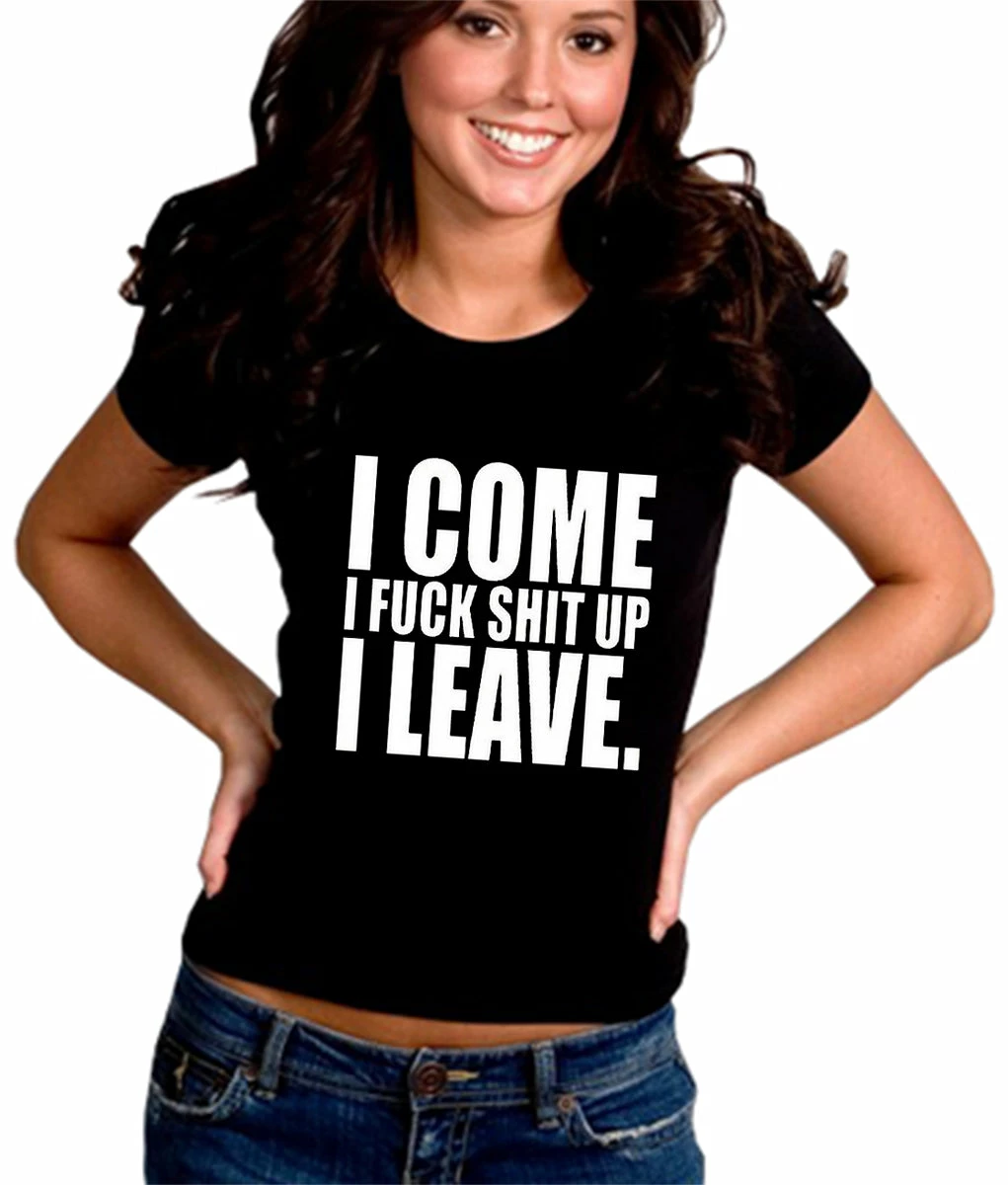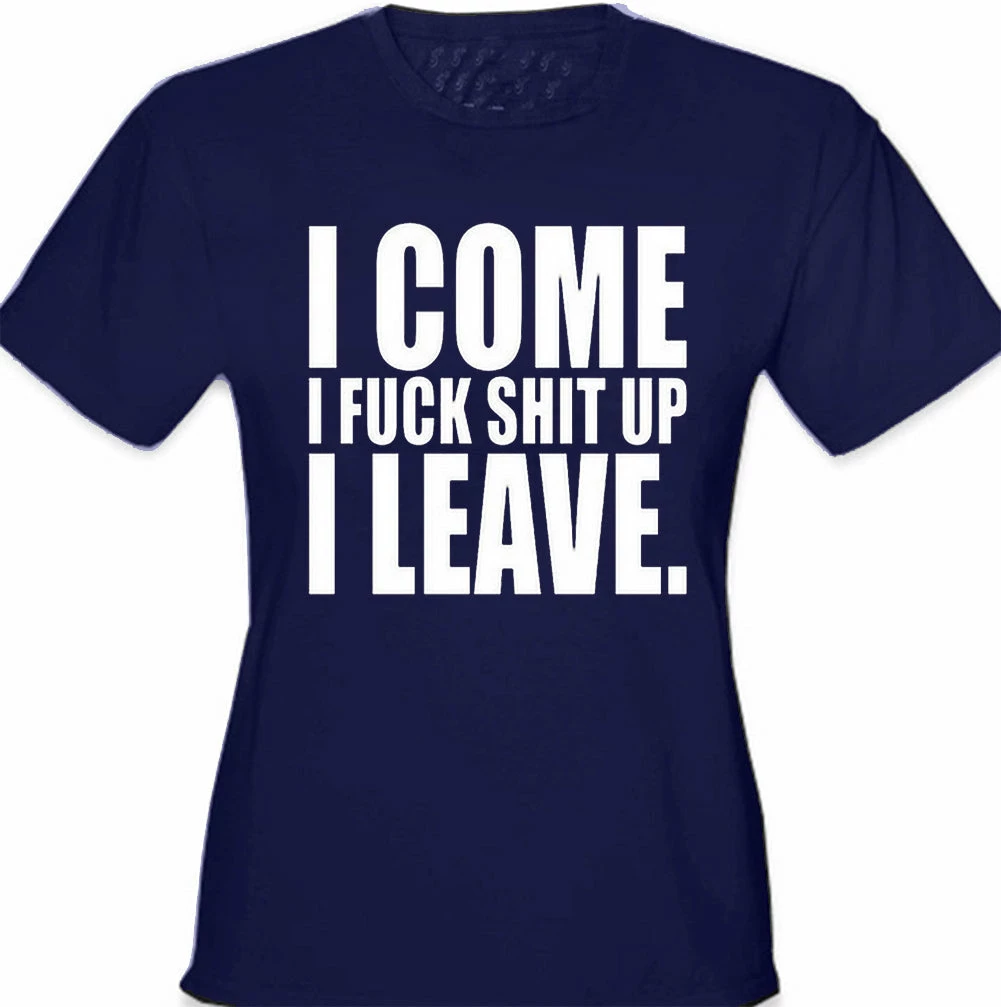 I Come I F*ck Sh*t Up I Leave Junior Fitted shirts are a S-32″ at bust and 29″ at waist, M-34″ at bust and 30″ at waist , L36″ at bust and 34″ at waist, XL-38″ at bust and 35″ at waist.
