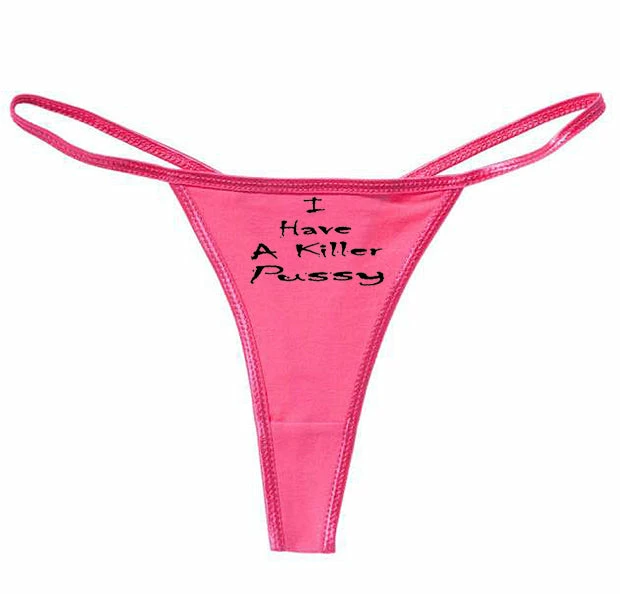Ladies be prepared to see jaws drop with our new sexy thong underwear! Every pair of our sexy thong panties feature a funny saying like this “I Have A Killer Pus*y” Thong. The perfect addition to any intimate outfit. Of course, they look incredible all by themselves as well. All of Bewild’s thongs are Made in the USA from soft 100% cotton and are machine washable.