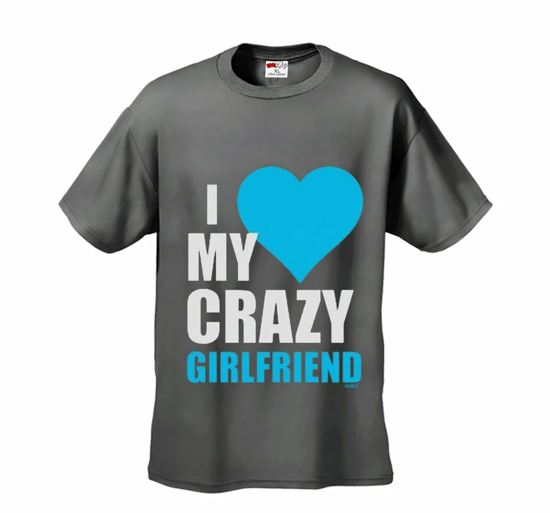 I Heart My Crazy Girlfriend Men’s T-Shirt features a classic 100% Cotton style is a great choice for anyone’s T-shirt drawer. These I Heart My Crazy Girlfriend Men’s T-Shirts have been printed with image on the front. These t shirts are made from heavyweight 6oz. 100% Preshrunk cotton. Looks Great, Priced right – and gets better with each washing.