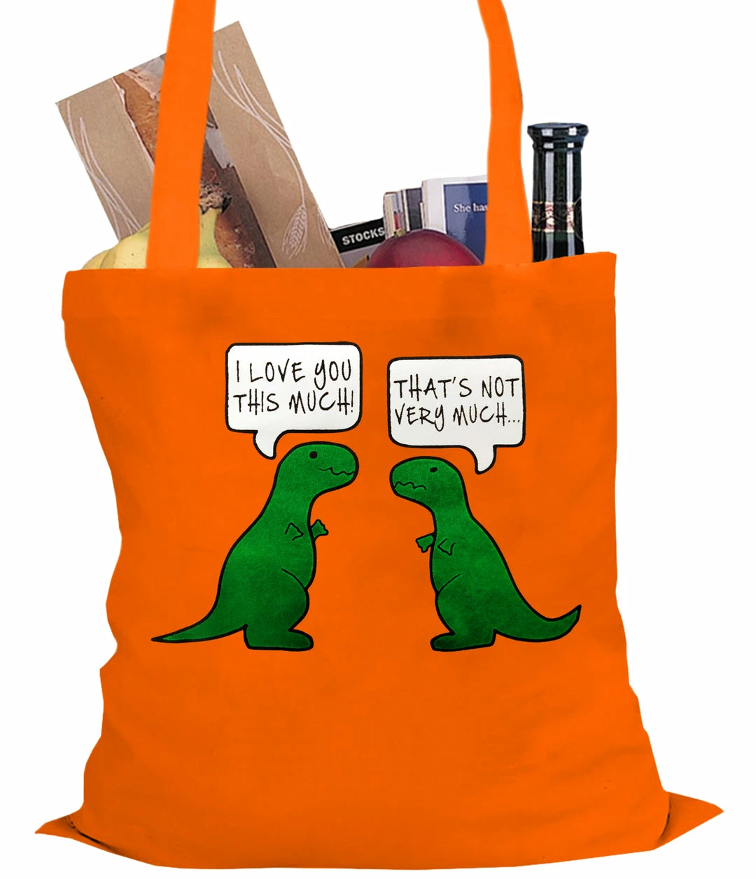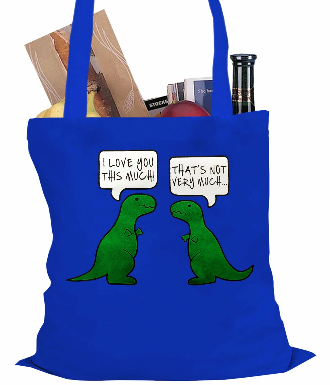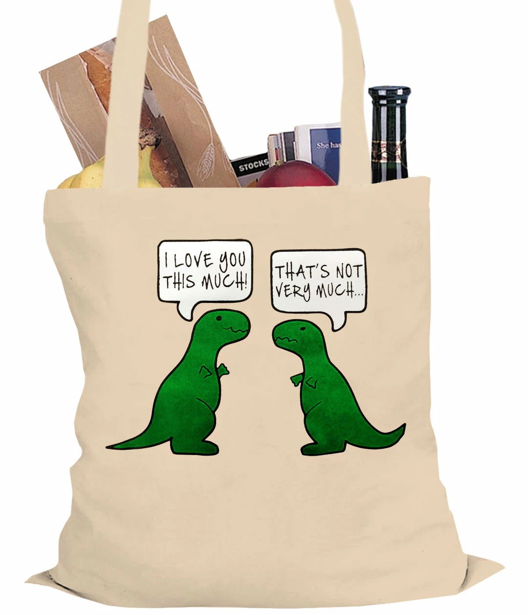 Bewild I Love You This Much Funny T-Rex Tote Bag Positive Reinforcement
