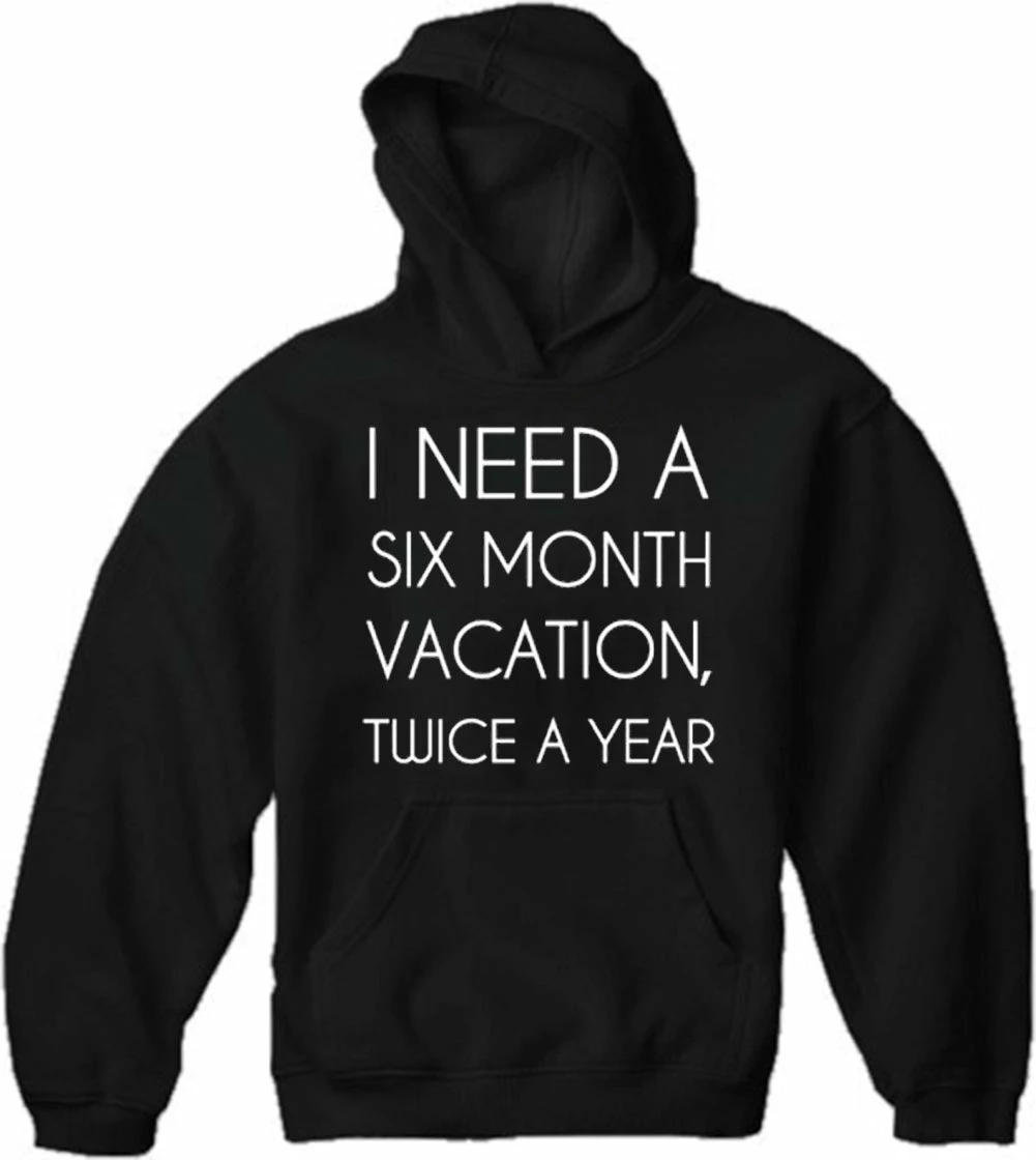 I Need A 6 Month Vacation is a sporty hooded pullover that will always look smooth, thanks to our spill-resistant fleece.