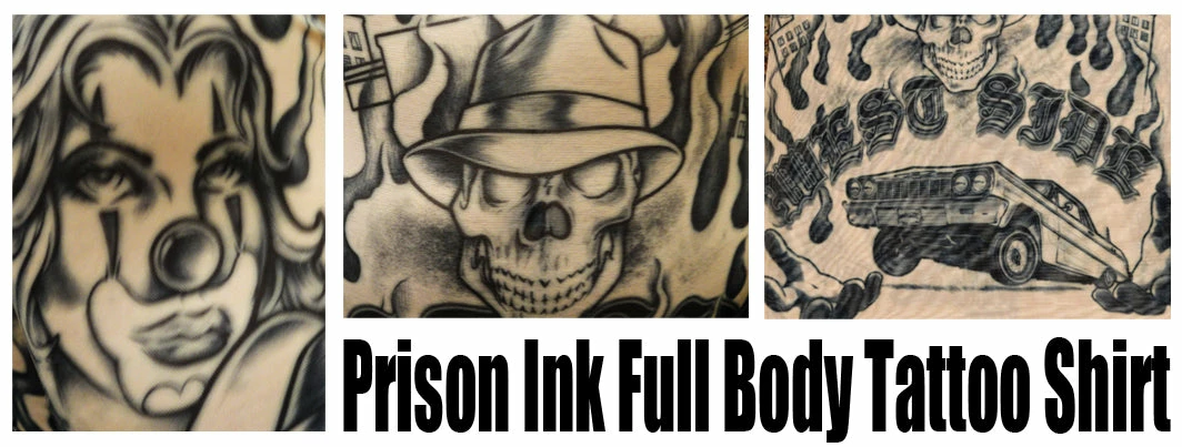Prison Ink Full Body Tattoo Shirt. This Prison Ink Full Body Tattoo Shirt emulates a real full body tattoo. It features different prison style tattoo designs all over it. This Prison Ink Full Body Tattoo Shirt fits tight on your body and really makes it look like you have a full body prison tattoo! BeWild, and purchase your Prison Ink Full Body Tattoo Shirt today!