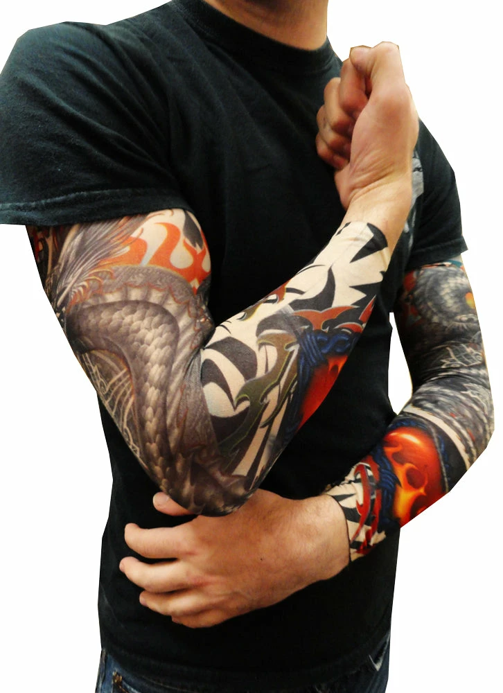 Hot new amazing item, temporary slip on body art. Amaze your boss, your wife, your friends with our new temporary tattoo sleeves. Now you can get “inked” by night and still keep your day job with our amazingly cool “tattoo sleeves” the tattoo is printed directly on the sleeves fabric which is a machine washable nylon. They come in pairs; wear one or both. Choose from Butterfly, Japanese, Tribal, Celtic or traditional.