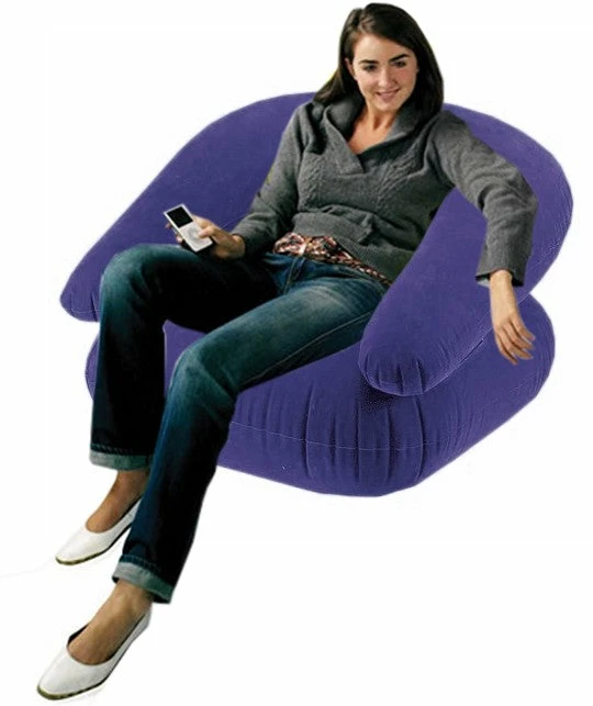 Deluxe Comfort Velvet Inflatable Chair. Our premium velvet inflatable chairs are plush and soft to the touch. Blow uop chairs and inflatable furniture is perfect for on the go and inflates in minutes. We think you will find these Inflatable chairs to be far more comfortable and compact then folding chairs making this chair perfect for camping, picnics, outdoor concerts, the beach and even dorm rooms. This blow up chair is durable enough for daily use yet can be easily inflated or deflated for immediate use or storage. Sofas and couches cost a fortune making kids bedrooms, dorm rooms and family rooms very expensive to furnish. We offer these inflatable chairs as a less expensive option for those who wish to furnish their homes with attractive, comfortable and quality furniture that kids and adults love at a fraction of the price.