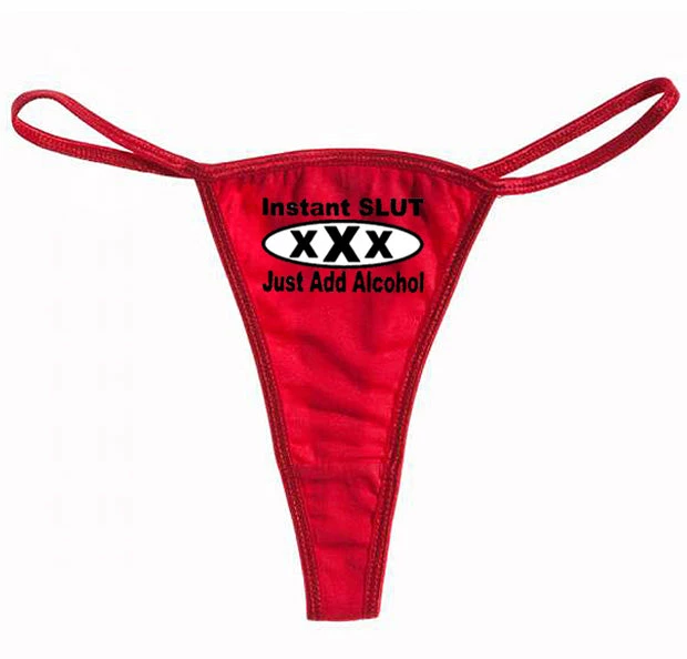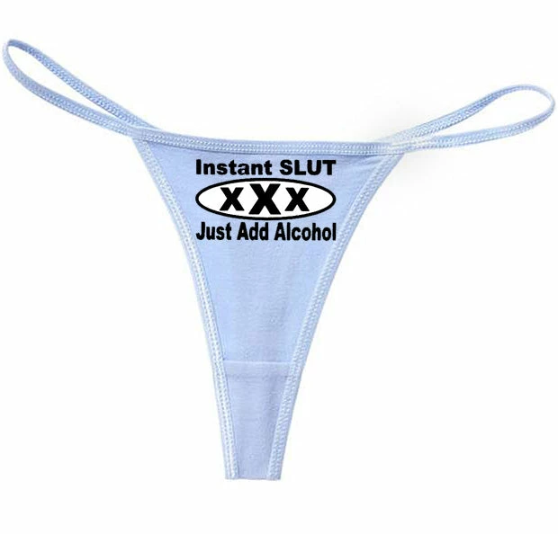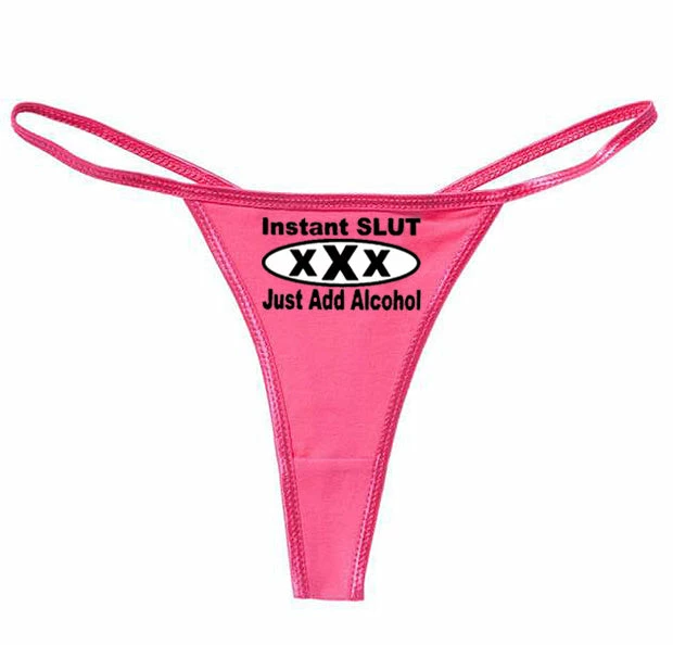 Ladies be prepared to see jaws drop with our new sexy thong underwear! Every pair of our sexy thong panties feature a funny saying like this “Instant Slut Just Add Alcohol” Thong. The perfect addition to any intimate outfit. Of course, they look incredible all by themselves as well. All of Bewild’s thongs are Made in the USA from soft 100% cotton and are machine washable.