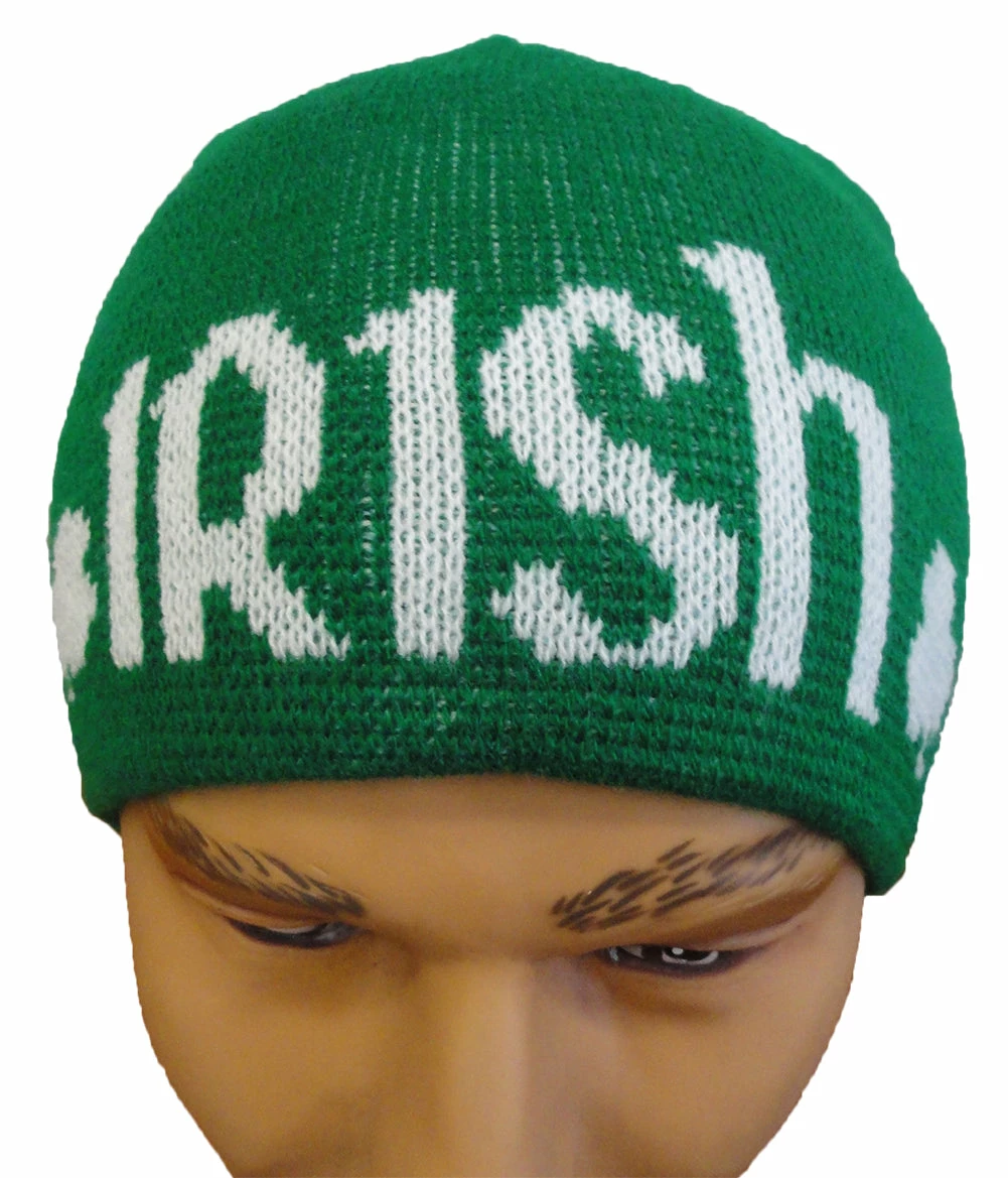 Soft beanies will keep you protected from the elements in simplicity. Constructed out of 1 panel of fine, tight, rib knit to give this hat extreme stretch and flexibility, this skull cap has no seams running down the round crown to ensure a slim, uninterrupted fit. Its generous length adds versatility to this hat. Its elasticity allows this hat to securely and comfortably top a child’s head as well as any adult head size. Lightweight, this functional beanie will see you from fall to the end of winter with ease. This Beanie features a white text saying “IRISH” and two groups of white shamrocks on the front. Perfect for St. Patrick’s Day.