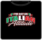 Italian Attitude T-Shirt. Exclusively from Bewild.com, these new tee’s feature hard-core sayings that say it all. From “Trust Me I’m A Doctor” to “Thats Mr. Asshole To You”. How about a t-shirt that says “I Scored High On My Drug Test” Our short sleeve t-shirts are made from a 100% fully machine washable cotton/poly blend for a cool and comfortable fit every time. On the front of this shirt it says “I’ve got an Italian Attitude”.
