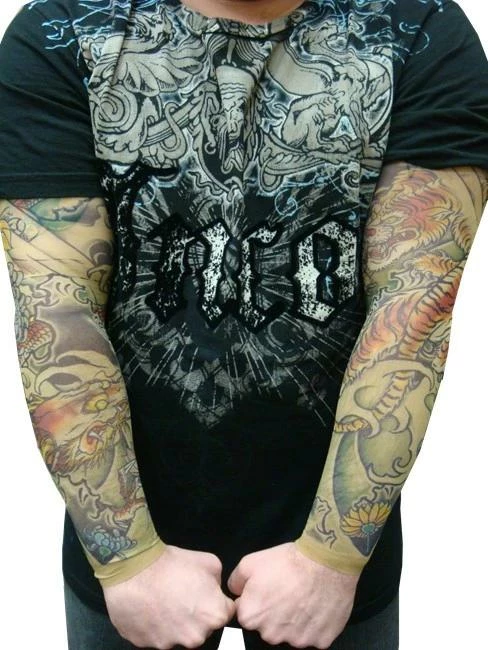 Tattoo Sleeves – Authentic Sleeves Brand Pair of Tattoo Sleeves (Japanese) . Sleeves brand clothing is at the forefront of tattoo clothing and designs. Each one of their garments are designed by industry leading tattoo artist and feature quality transparent mesh material that fits skin tight and makes these designs look like authentic tattoos. You wont believe how realistic these look! Even your friends who know you will have a double take! These are the same awesome quality sleeves they use in Hollywood in high definition movie product, so you know they are good! These feature tapered arm lengths so they will fit perfect and a seemless wrist so the material appears to be fluish with your skin. These sleeves feature Japanese designs featuring tigers, lotus flowers and many more japanese influenced art !