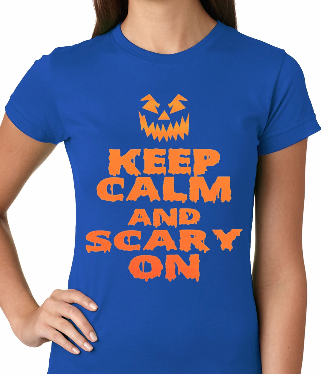 Bewild Keep Calm And Scary On Funny Halloween Ladies T-shirt Halloween Prints