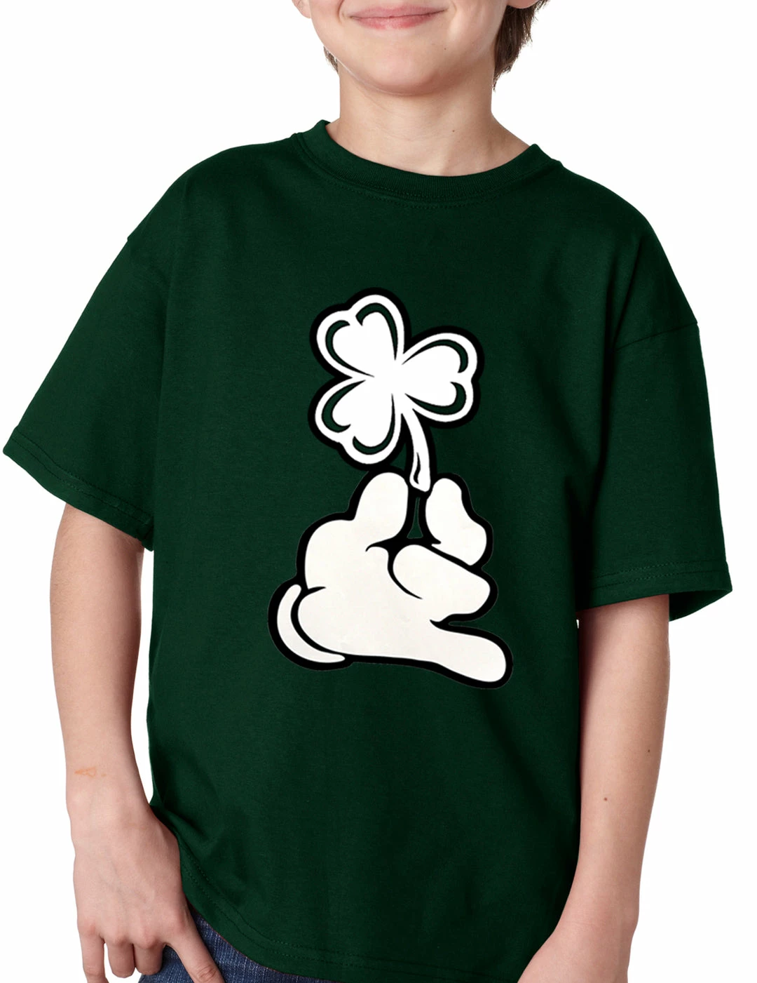 Bewild Kid’s T-Shirts St. Patrick’s Day Cartoon Hand Holding Shamrock Kids T-shirt