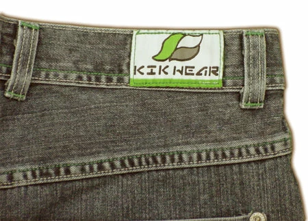 New trim Black/Green/White embroidered K at back pocket. Green & White topstitching. Kik Wear wideleg jeans are 100% machine washable so there’s no running to the cleaners. As with all Kik Wear clothing, a comfortable great fit every time!