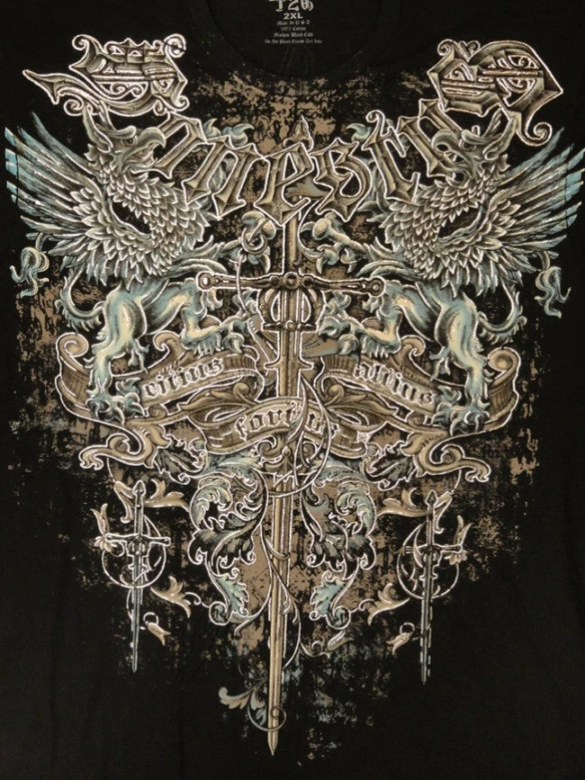 Konflic T2G “Battle Griffin” T-Shirt. Enter the world of Konflict; a place where style rules and only the strong survive. Konflict T2G clothing brings you this full line of MMA inspired t-shirts the are perfect for an aggressive lifestyle. Each battle hardened t-shirt is sure to make look supreme whether you are sweatin’ it out at the gym, hittin’ the club or takin’ the streets by storm. Each Konflict T2G T-Shirt features premium 100% cotton construction, Detailed immersion ink prints all over and are accented by unique metallic ink for a bad ass look that’s all your own. Get with it and get in Konflict!