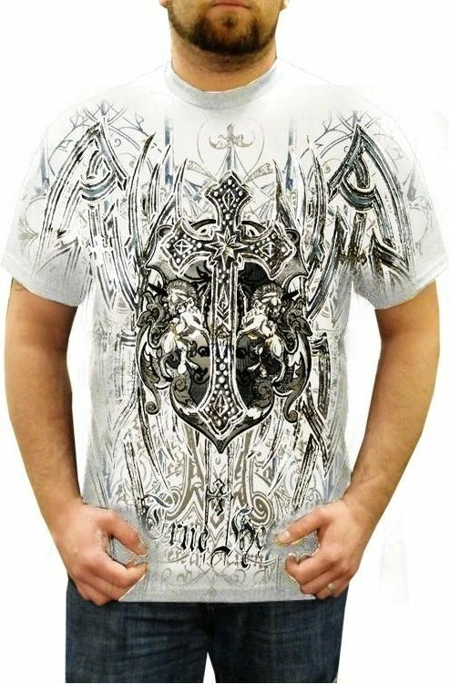 Konflic Clothing “True Heart Silver Cross” T-Shirt. Enter the world of Konflict; a place where style rules and only the strong survive. Konflict T2G clothing brings you this full line of MMA inspired t-shirts the are perfect for an aggressive lifestyle. Each battle hardened t-shirt is sure to make look supreme whether you are sweatin’ it out at the gym, hittin’ the club or takin’ the streets by storm. Each Konflict T2G T-Shirt features premium 100% cotton construction, Detailed immersion ink prints all over and are accented by unique metallic ink for a bad ass look that’s all your own. Get with it and get in Konflict!