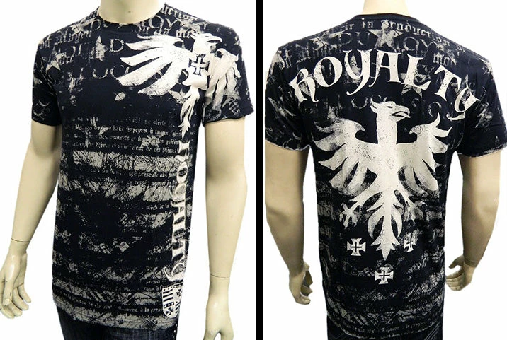 Konflict T2G “Royalty” T-Shirt. Enter the world of Konflict; a place where style rules and only the strong survive. Konflict T2G clothing brings you this full line of MMA inspired t-shirts the are perfect for an aggressive lifestyle. Each battle hardened t-shirt is sure to make look supreme whether you are sweatin’ it out at the gym, hittin’ the club or takin’ the streets by storm. Each Konflict T2G T-Shirt features premium 100% cotton construction, Detailed immersion ink prints all over and are accented by unique metallic ink for a bad ass look that’s all your own. Get with it and get in Konflict!