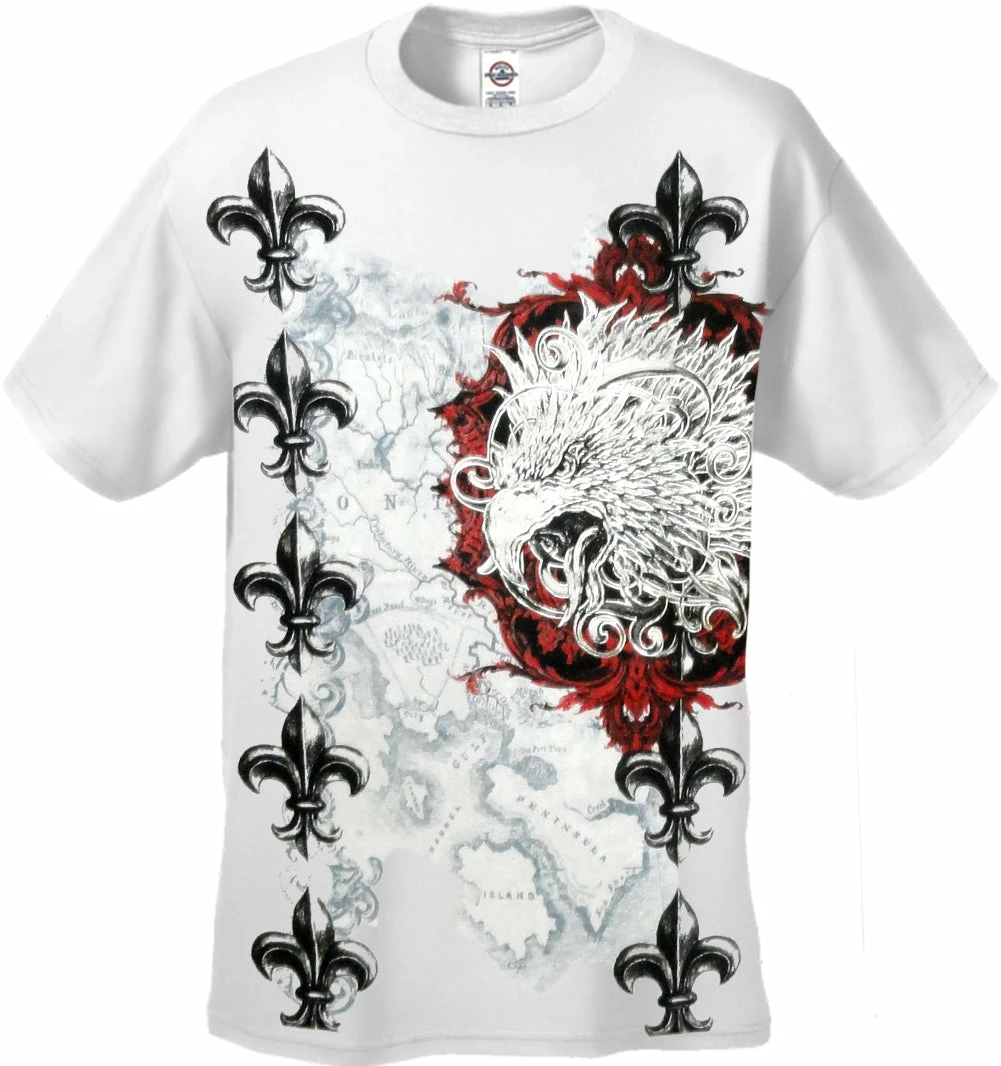 Konflic T2G “White Eagle Of Death” T-Shirt. Enter the world of Konflict; a place where style rules and only the strong survive. Konflict T2G clothing brings you this full line of MMA inspired t-shirts the are perfect for an aggressive lifestyle. Each battle hardened t-shirt is sure to make look supreme whether you are sweatin’ it out at the gym, hittin’ the club or takin’ the streets by storm. Each Konflict T2G T-Shirt features premium 100% cotton construction, Detailed immersion ink prints all over and are accented by unique metallic ink for a bad ass look that’s all your own. Get with it and get in Konflict!