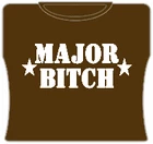 Major Bitch Girls T-Shirt. Exclusively from Bewild.com, these new tee’s feature hard-core sayings that say it all. From “Trust Me I’m A Doctor” to “Thats Mr. Asshole To You”. How about a t-shirt that says “I Scored High On My Drug Test” Our short sleeve t-shirts are made from a 100% fully machine washable cotton/poly blend for a cool and comfortable fit every time. On the front of this shirt it says “Major Bitch”.