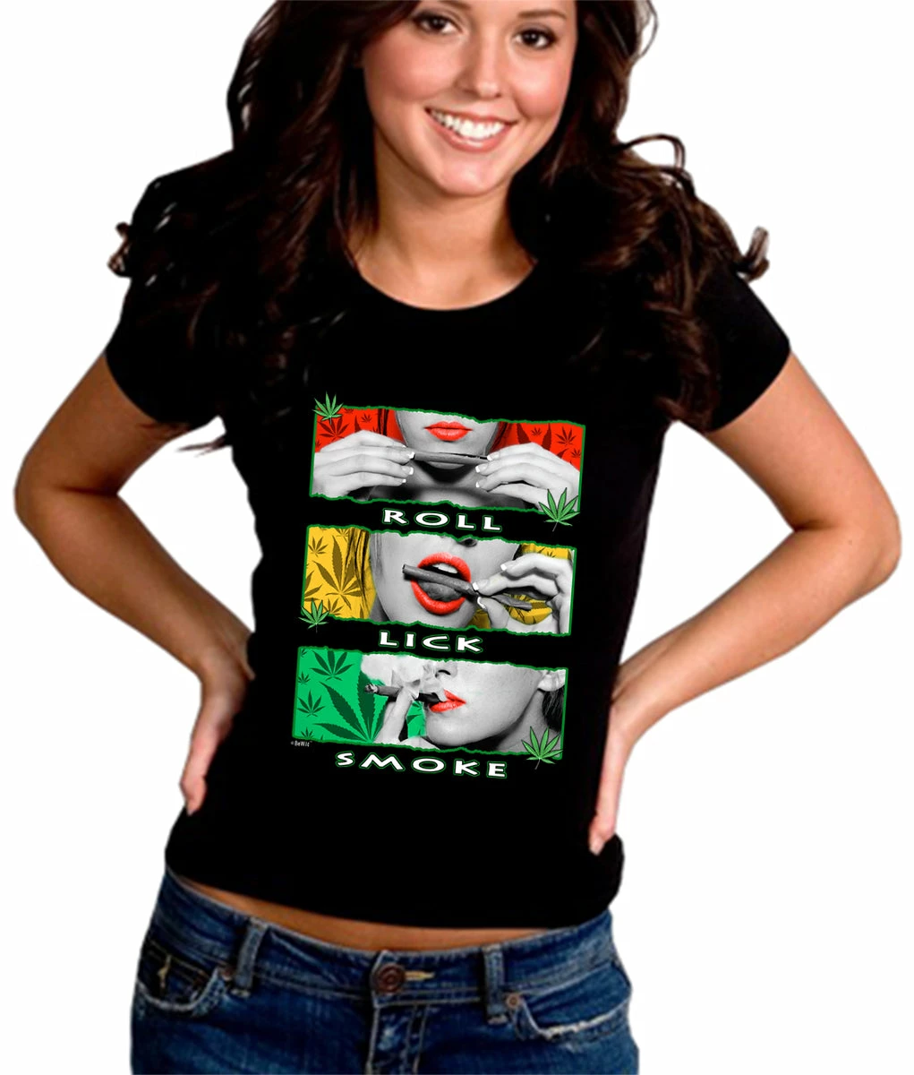 Marijuana Girl Roll Lick Smoke Junior Fitted shirts are a S-32″ at bust and 29″ at waist, M-34″ at bust and 30″ at waist , L36″ at bust and 34″ at waist, XL-38″ at bust and 35″ at waist.