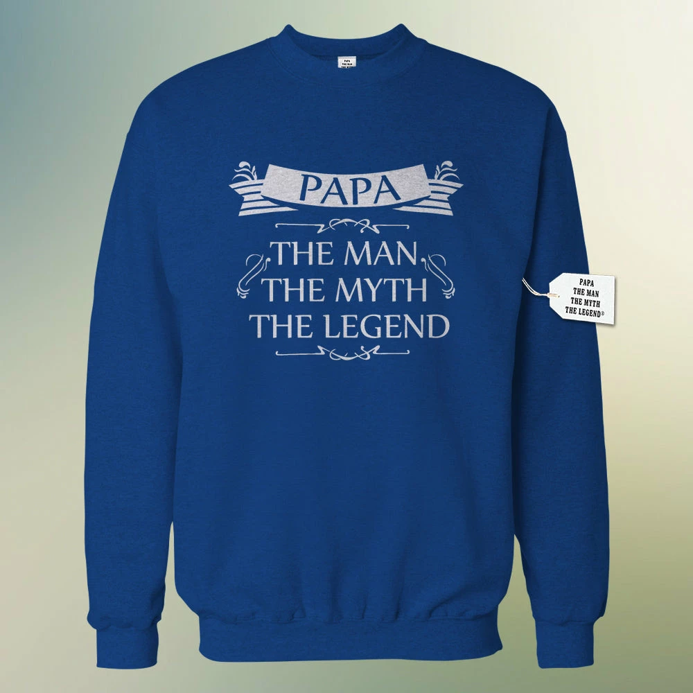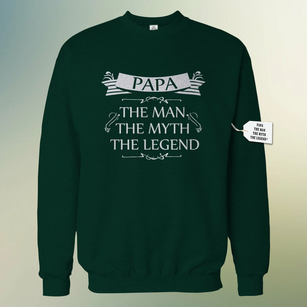 Bewild Mens Papa – The Man, The Myth, The Legend Fathers Day Adult Crewneck